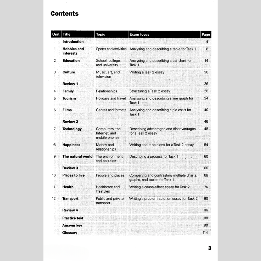• Four review units to check and consolidate understanding of key language and skills for the IELTS Writing test