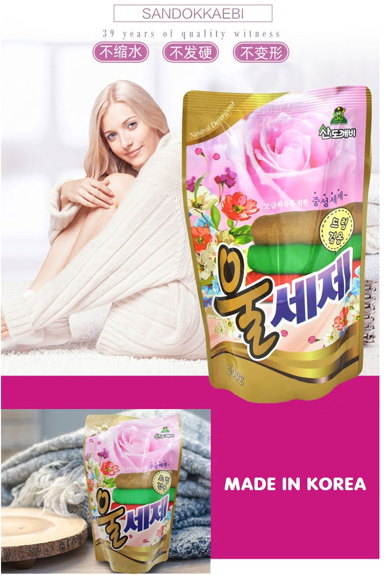 Nước giặt vải len, vải dạ, nỉ Sandokkaebi 500g là loại nước giặt chuyên dụng dành riêng để giặt áo len, áo dạ, quần áo nỉ, quần áo thể thao & quần áo, đồ lót trẻ em giúp cho quần áo, vải bền đẹp, không làm phai màu vải, giúp sợi vải mềm mại, không bai, xù và đặc biệt không gây ra hiện tượng tĩnh điện
