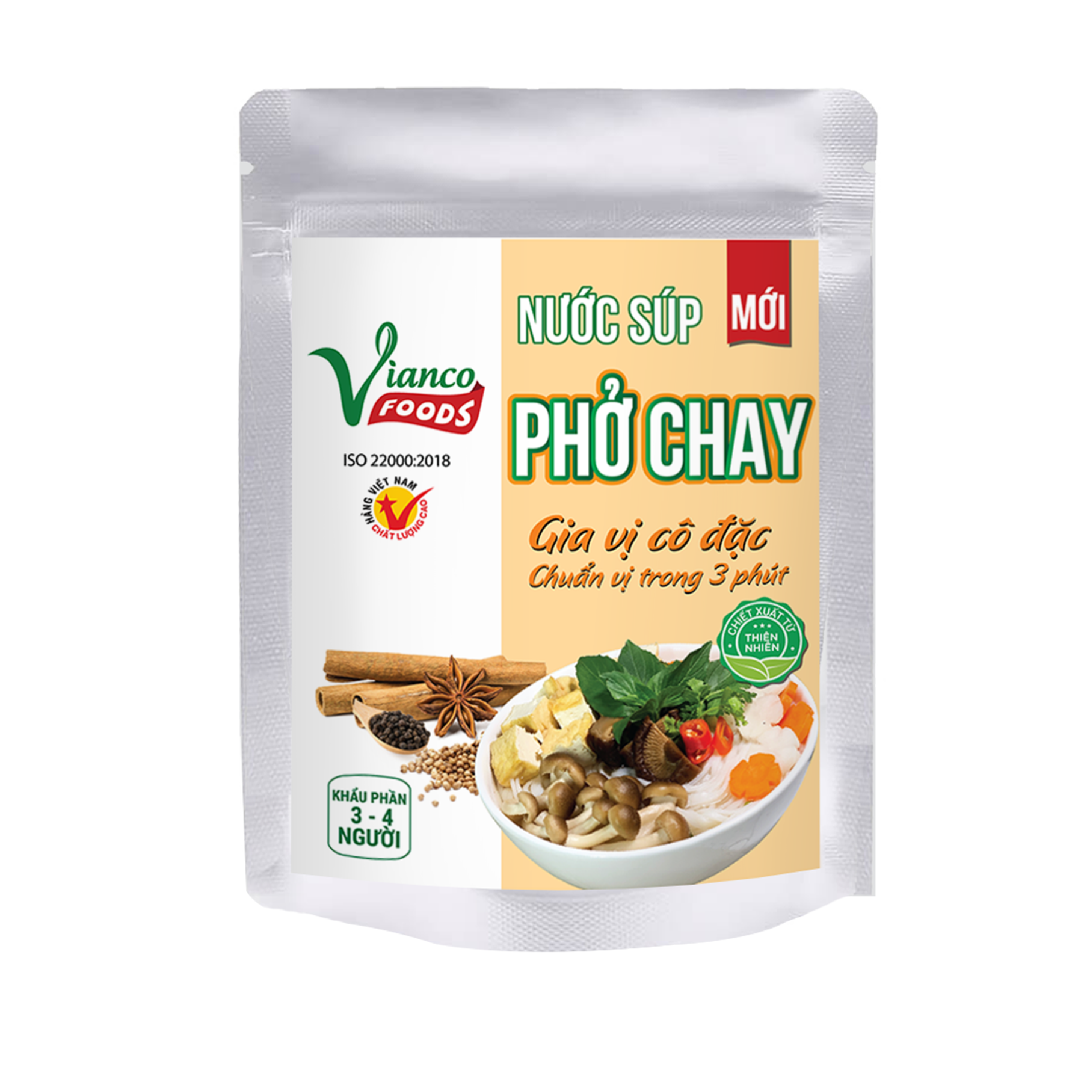 Nước súp phở Chay – Gia vị cô đặcMô tảPhở là một món ăn truyền thống của Việt Nam, được cho là có nguồn gốc từ Nam Định, cũng có thể xem là một trong những món ăn tiêu biểu cho nền ẩm thực Việt Nam....