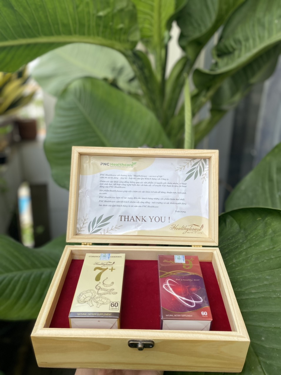 Combo 1 hộp Đông Trùng Linh Chi 7+ Hỗ Trợ Tăng Đề Kháng, Giảm Mệt Mỏi và 1 Hộp Viên Uống 9+ Tốt Gan Khỏe Người, Hộp 60 Viên Quà tặng Hộp gỗ + Túi