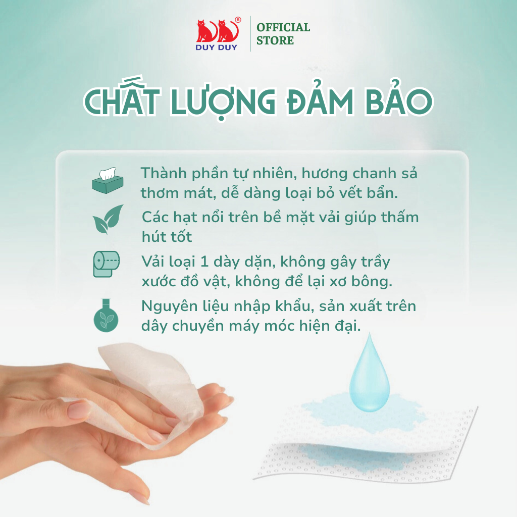 Chất liệu vải không dệt chống nhăn, mặt vải mềm mại, thấm hút tốt, nhanh chóng tẩy vết bẩn khô lẫn ướt mà không để lại vết lau. Thấm hút cực tốt . Có thể