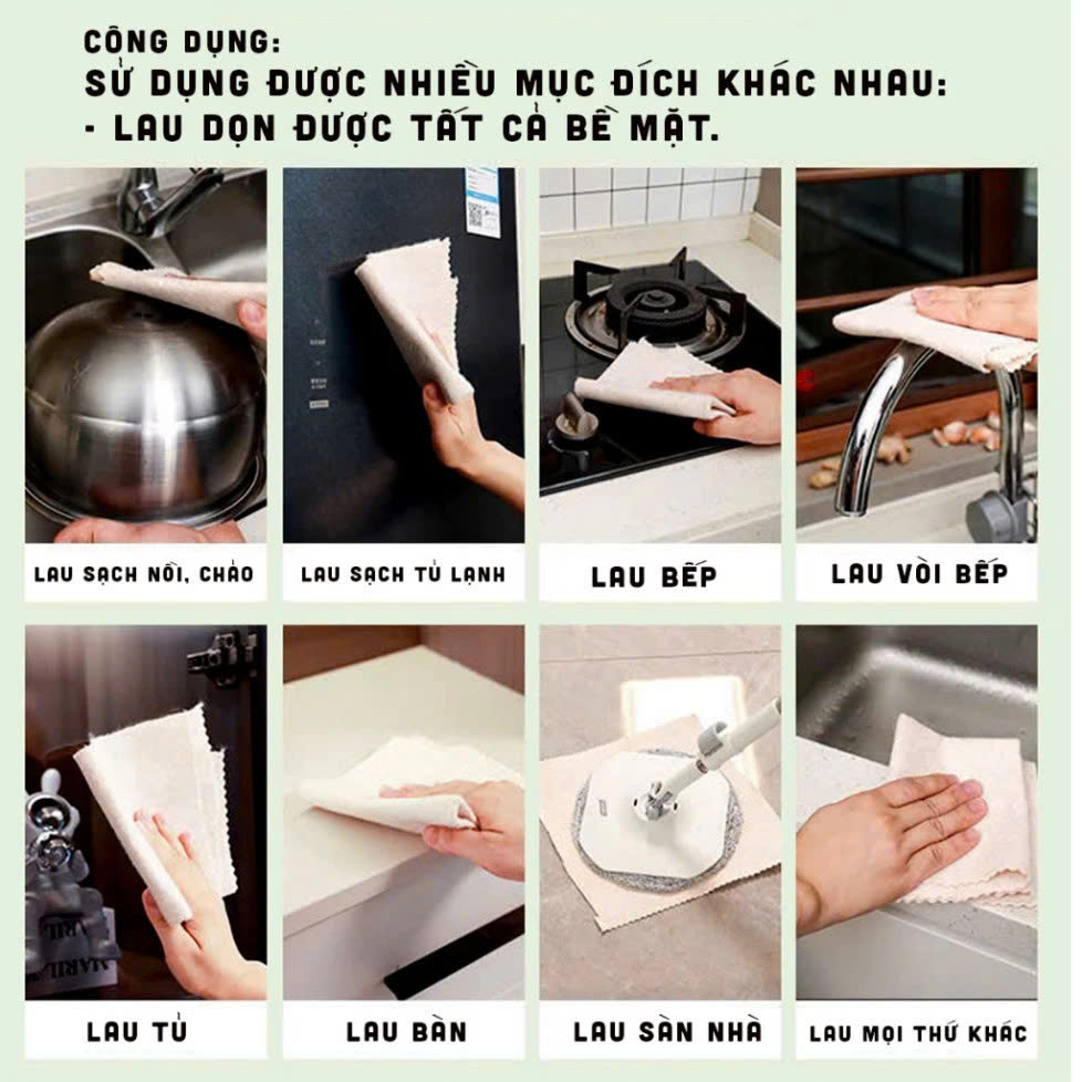 ✨COMBO 10 Khăn Lau Xơ Mướp Đa Năng Lau Bề Mặt, Đánh Bay Dầu Mỡ 20cm x 20cm Siêu Thấm Hút Kháng Khuẩn An Toàn TÁI SỬ DỤNG NHIỀU LẦN