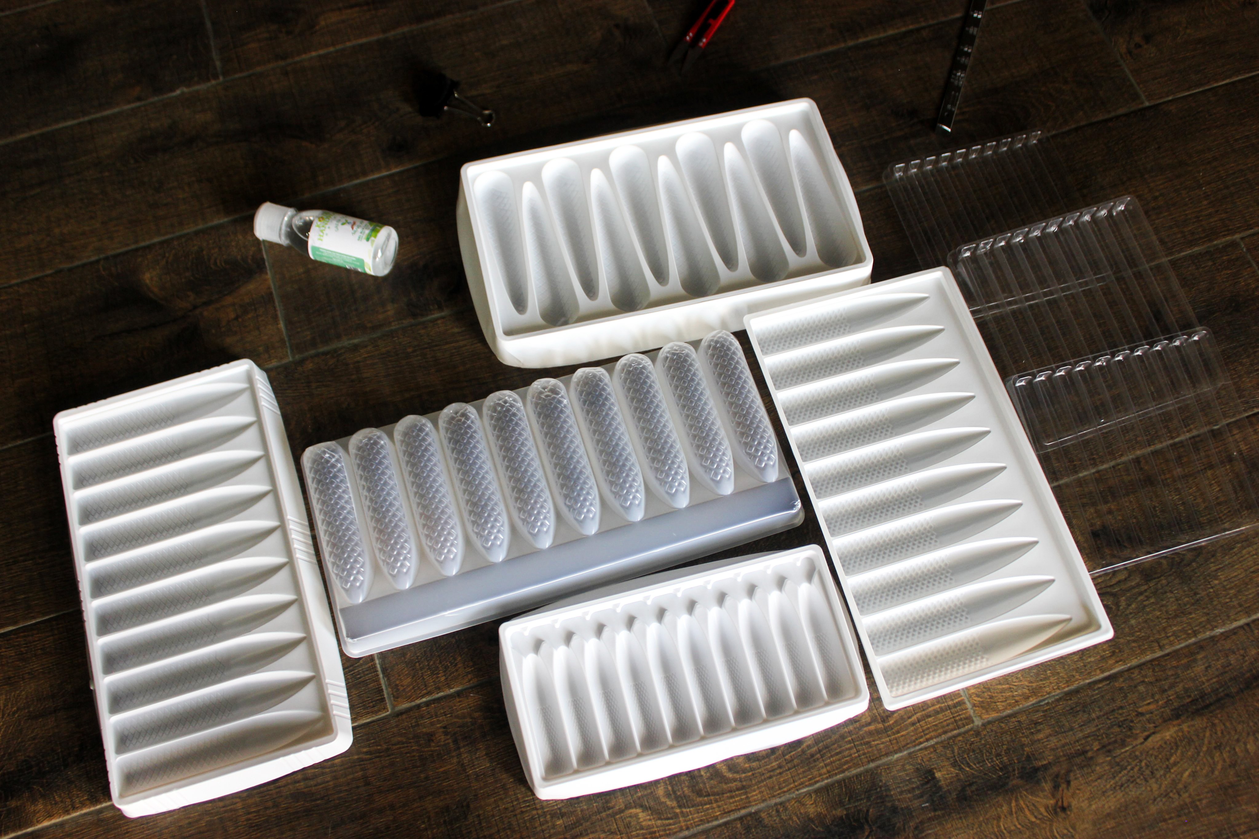 Khay nhựa PP đựng tôm được chia ra thành từng ngăn riêng biệt (thường 10 ngăn) với kích thước vừa đủ để đảm bảo sao cho giữ được hình dáng và chất lượng của con tôm trong quá trình bảo quản tủ đông trong siêu thị hay vận chuyển trên cont để xuất khẩu đường thủy hay đường hàng không.