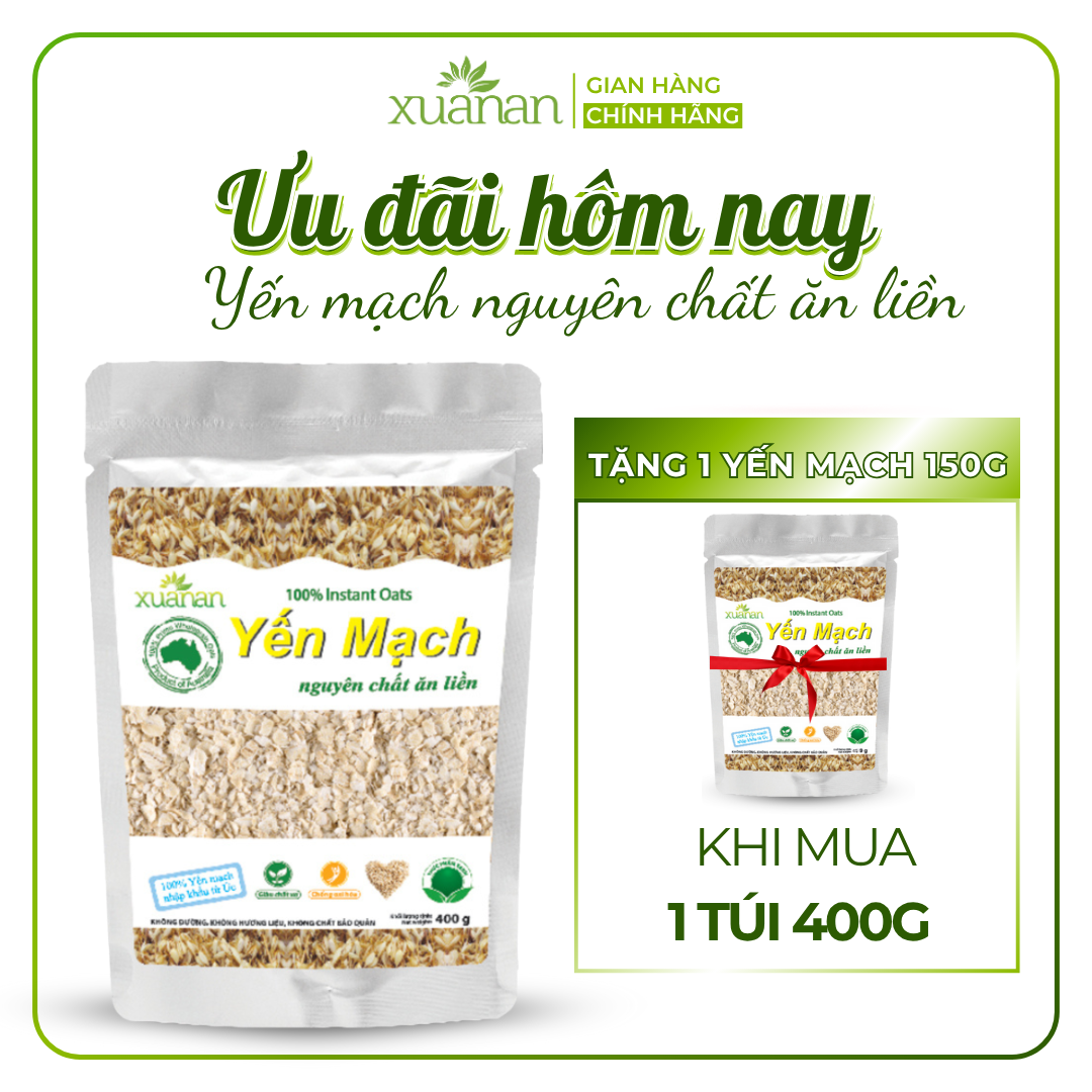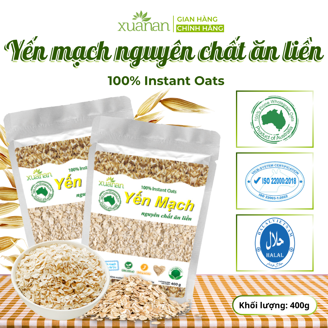 YẾN MẠCH NGUYÊN CHẤT ĂN LIỀN – TÚI 400G Yến mạch là loại ngũ cốc giàu chất xơ, giàu đạm, vitamin và dưỡng chất tự nhiên. Yến mạch nguyên chất Xuân An (Instant Oats) 100% được