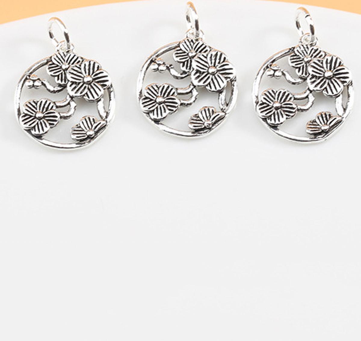 CHARM BẠC TRÒN HÌNH HOA 5 CÁNH TREO :