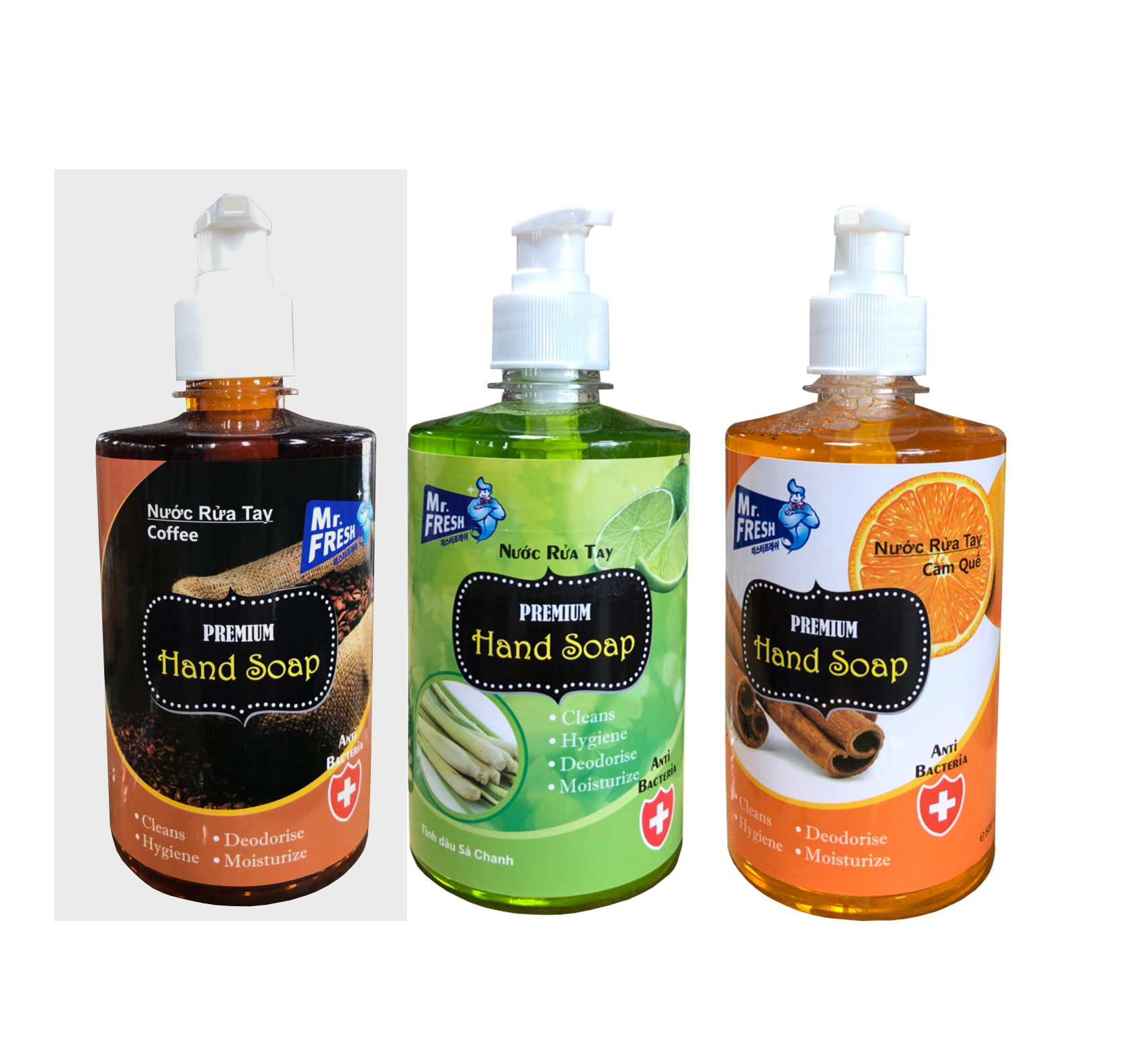THÔNG TIN SẢN PHẨM Tên sản phẩm : Nước rửa tay Premium Hand Soap Mr Fresh 500mlCông dụng : Làm sạch tay, kháng khuẩn, khử mùi, giúp đôi tay mềm mại mà vẫn sạch khuẩn.Thành