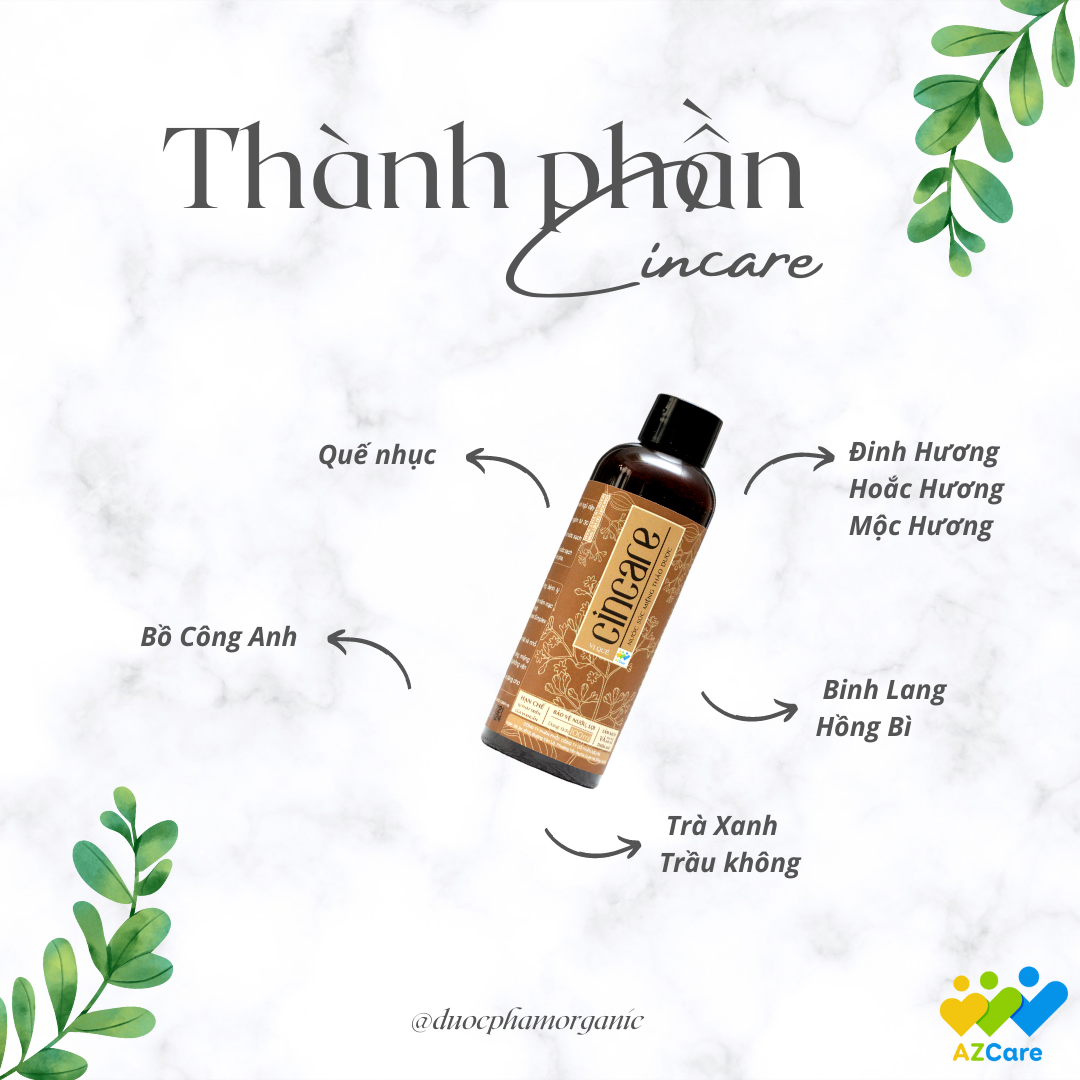 NƯỚC SÚC MIỆNG THẢO DƯỢC CINCARE: 100 NGƯỜI DÙNG, 99 NGƯỜI KHEN Theo kết quả của nghiên cứu lâm sàng, 100% hết đau rát do nhiệt miệng sau 2 ngày 99,9% vi khuẩn có hại bị “đánh bay" khỏi khoang miệng sau mỗi lần sử dụng 24 TIẾNG lưu giữ hơi thở thơm mát, nồng ấm từ quế nhục 2 PHÚT/NGÀY, giảm ngay chảy máu, đau nhức răng 3 NGÀY làm dịu khoang miệng bị lở loét, sưng đỏ của nhiệt miệng 30 GIÂY dọn sạch sẽ mảng bám, ngừa tích tụ cao răng, nha chu, viêm nướu 97% người sử dụng cảm nhận hiệu quả cải thiện sức khỏe răng miệng đầy tích cực 100% không cồn, không paraben, an toàn tuyệt đối cho mẹ bầu, mẹ bỉm sữa và trẻ nhỏ Là thành quả của đội ngũ chuyên gia về dược liệu dày dạn kiến thức và hơn 10 năm kinh nghiệm của AZCARE, nước súc miệng Cincare là sản phẩm đầu tiên trong hành trình hiện thực hóa giấc mơ cung cấp sản phẩm chăm sóc sức khỏe an toàn, bền vững từ thảo mộc cho hàng triệu người tiêu dùng Việt. Hướng dẫn sử dụng: Ngày dùng 2 lần, sáng sau khi ngủ dậy và tối trước khi đi ngủ.  Súc miệng khoảng 10ml, ngậm từ 30 giây đến 1 phút rồi nhổ ra.  Có thể pha loãng gấp đôi với nước sạch để súc miệng (Lưu ý: dùng hết ngay sau khi pha)  Không cần súc miệng lại với nước sạch.  Đối tượng phù hợp: Người bị chảy máu chân răng, bệnh lý nha chu, hôi miệng.  Viêm họng, viêm amidan, viêm niêm mạc miệng, loét vùng miệng do nhiệt.  Mụn rộp vùng miệng do Herpes Simplex Virus. Người niềng răng.  Dùng sau điều trị răng hàm mặt và nhổ răng khôn.  Phòng ngừa nhiễm khuẩn răng miệng cho bệnh nhân nằm lâu ngày, không vận động. Để rõ hơn về tình trạng cũng như giải pháp cải thiện sức khoẻ răng miệng hiện tại của mình và cả gia đình, đừng ngần ngại inbox ngay cho fanpage AZCARE để được tư vấn và thăm khám online miễn phí bởi đội ngũ thạc sĩ, bác sĩ nha khoa chính quy ĐH Y Hà Nội nhé!