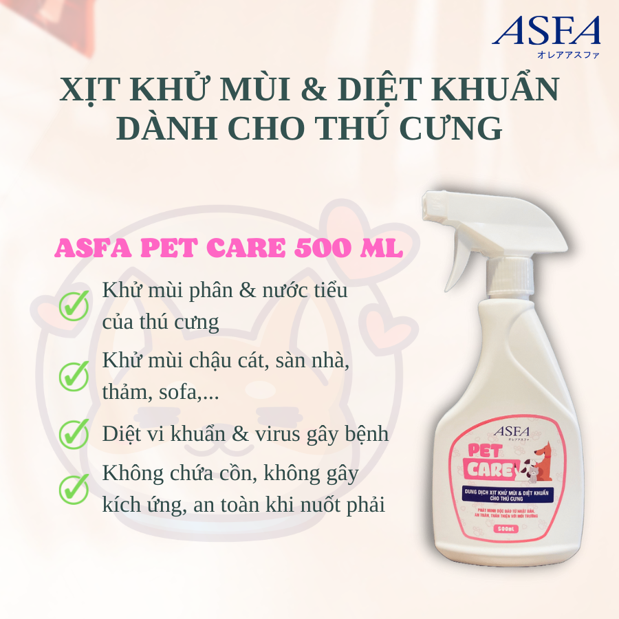 ✨[Combo 2 chai] Nước Xịt Khử Mùi, Diệt Khuẩn Cho Chó Mèo ASFA Pet Care 500ml