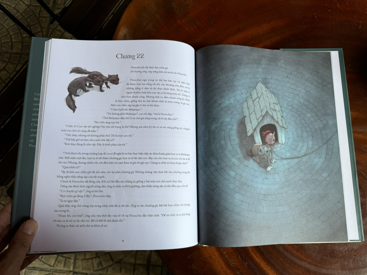 Còn Pinocchio hay Những cuộc phiêu lưu của cậu nhóc Pinocchio là tác phẩm do Carlo Collodi sáng tác, về hành trình của chú bé người gỗ cứng đầu, ngỗ nghịch và ngây thơ, phải vượt qua nhiều chông gai để hiểu được ý nghĩa của đức tính trung thực, lễ phép và vâng lời bố mẹ. Tác phẩm lần này được dịch bởi Azura Nguyễn (Hoàng Nhụy).