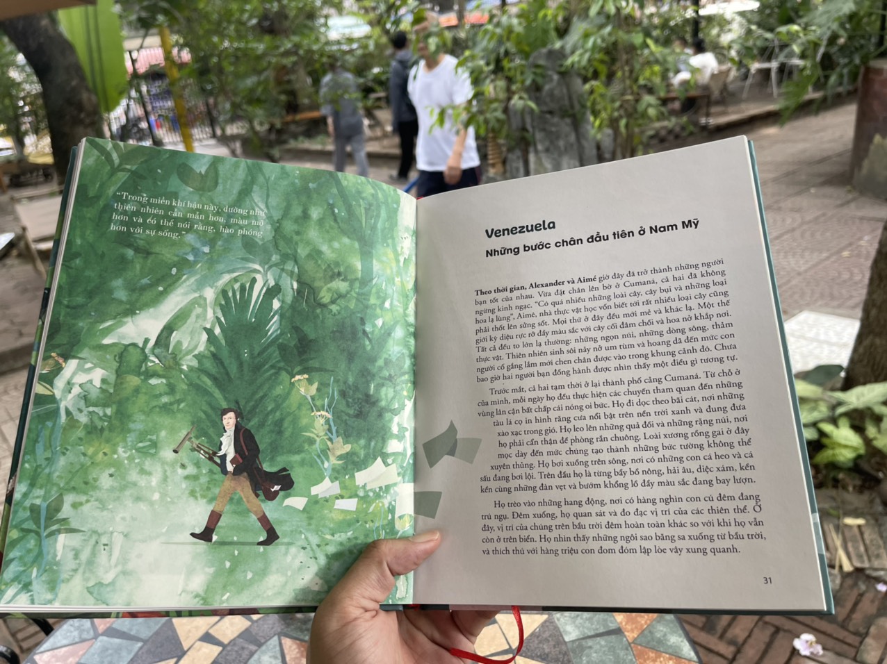 “Alexander von Humboldt – Khao khát khám phá những vùng đất lạ” Dành cho các bé từ độ tuổi 9+. Cuốn sách này cũng cố gắng để các cuộc đối thoại và bối cảnh lịch sử trở nên dễ hiểu, còn từ ngữ và trình tự của chúng thì không được truyền lại một cách hoàn toàn chính xác. Với sự trợ giúp của các phiên bản còn sót lại, các nghiên cứu khoa học gần đây và một tâm hồn mộng mơ, cuốn sách này kể về hành trình và những gì nhà nghiên cứu Alexander von Humboldt có thể đã trải qua cũng như cảm nhận thấy.