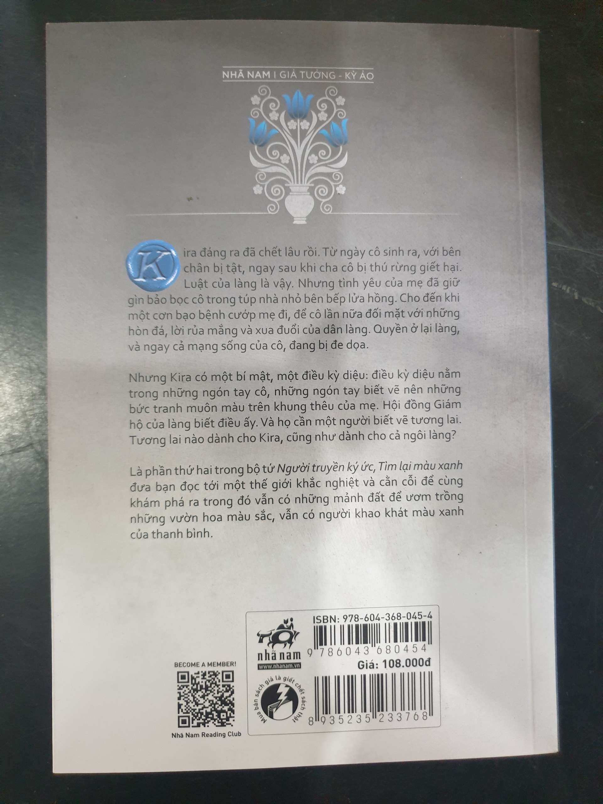 Là phần thứ hai trong bộ tứ Người truyền ký ức, Tìm lại màu xanh đưa bạn đọc tới một thế giới khắc nghiệt và cằn cỗi để cùng khám phá ra trong đó vẫn có những mảnh đất để ươm trồng những vườn hoa màu sắc, vẫn có người khao khát màu xanh của thanh bình.