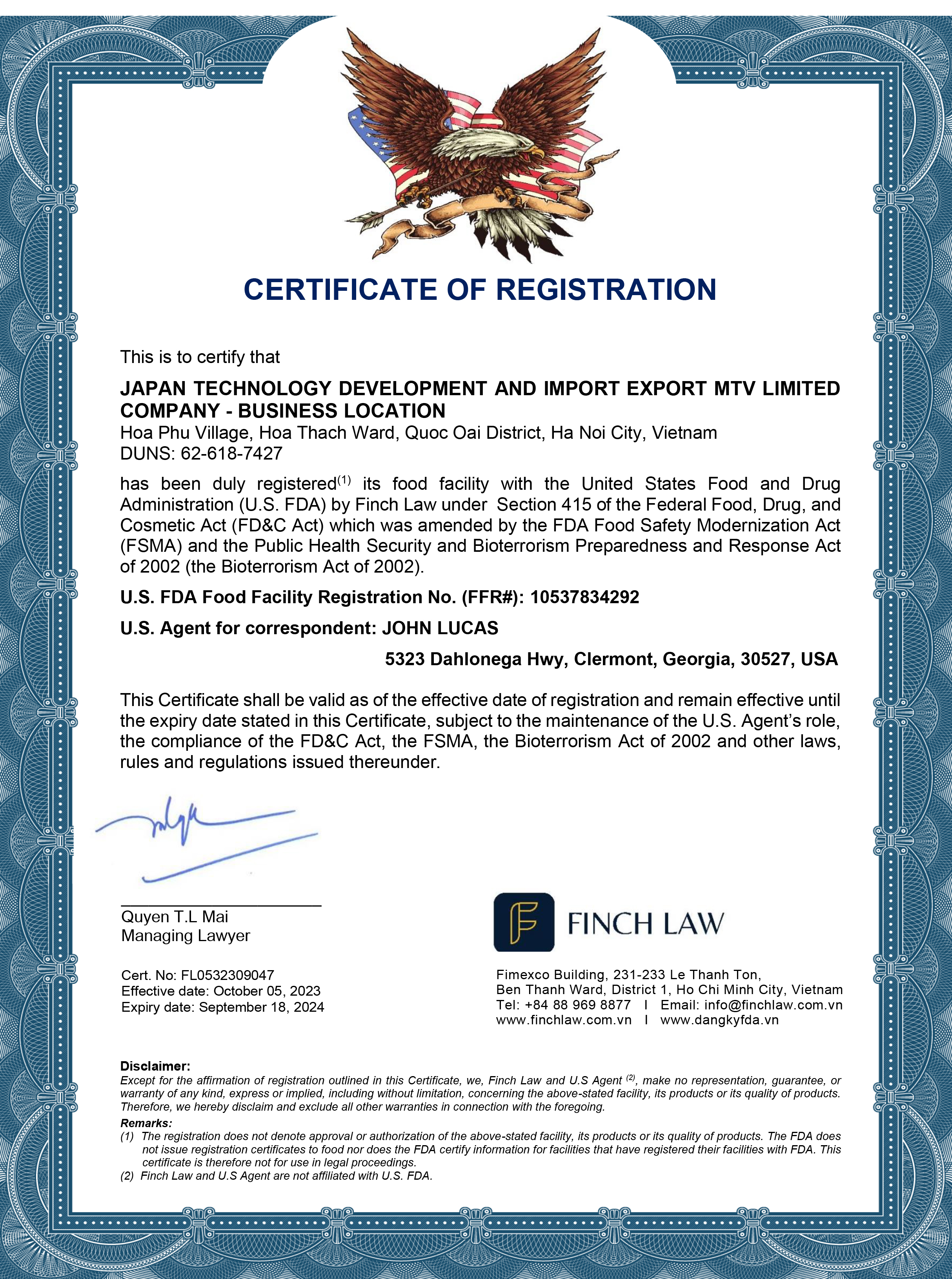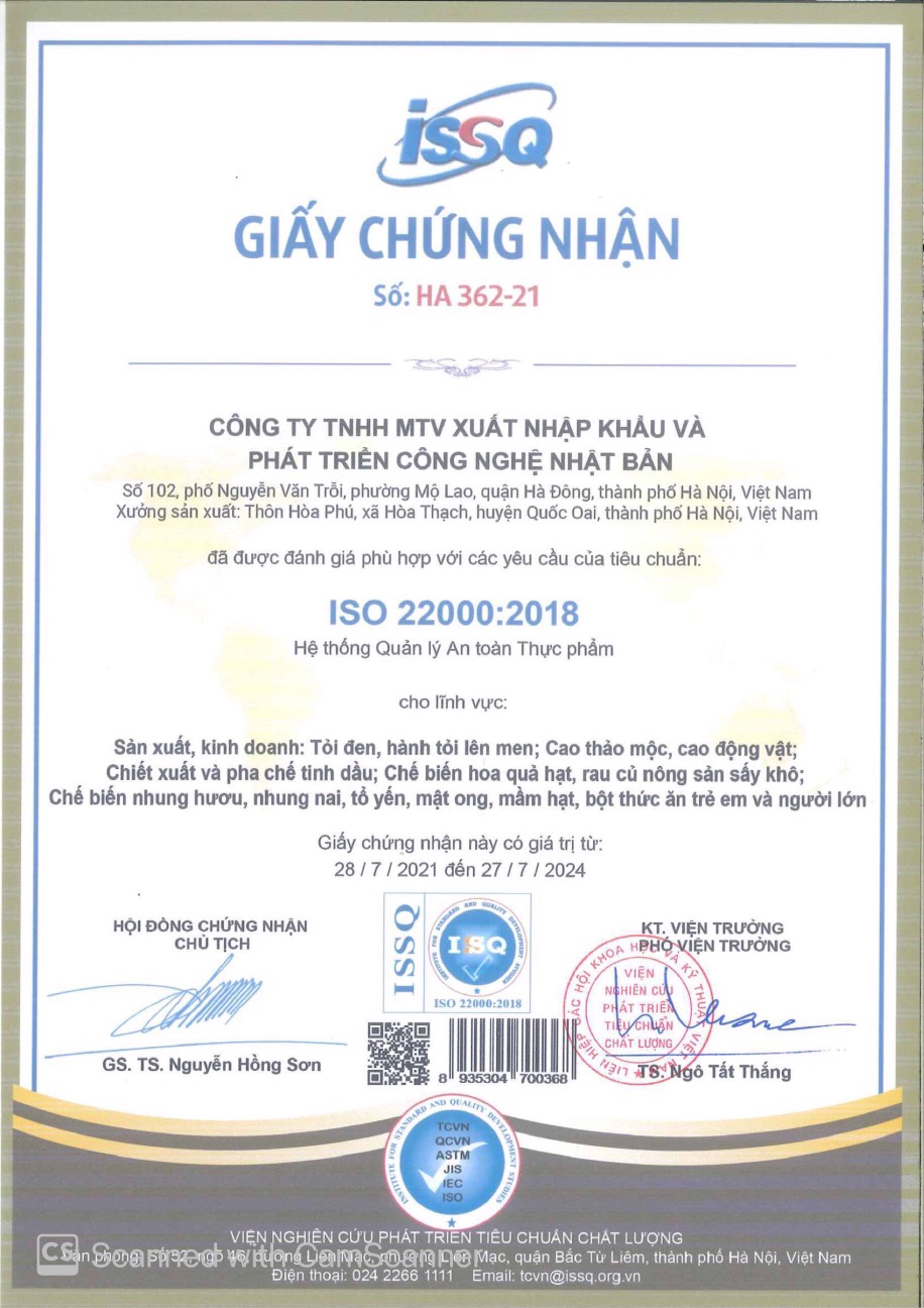 - Lô SX (LSX), Ngày sản xuất (NSX), Hạn sử dụng (HSD): In trên bao bì. Sản xuất và chịu trách nhiệm về sản phẩm: CÔNG TY TNHH MTV XUẤT NHẬP KHẨU VÀ PHÁT TRIỂN CÔNG NGHỆ NHẬT BẢN