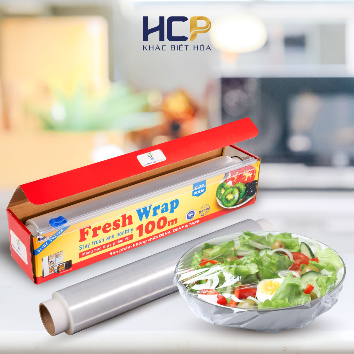 Quy Cách Túi:1 túi gồm 100 màng - Màng bọc thực phẩm co dãn nên phù hợp hầu hết các vật dụng cụ đựng thực phẩm như:đĩa, rổ rá, xoong,chả -Bọc nhanh gọn, tiện dụng
