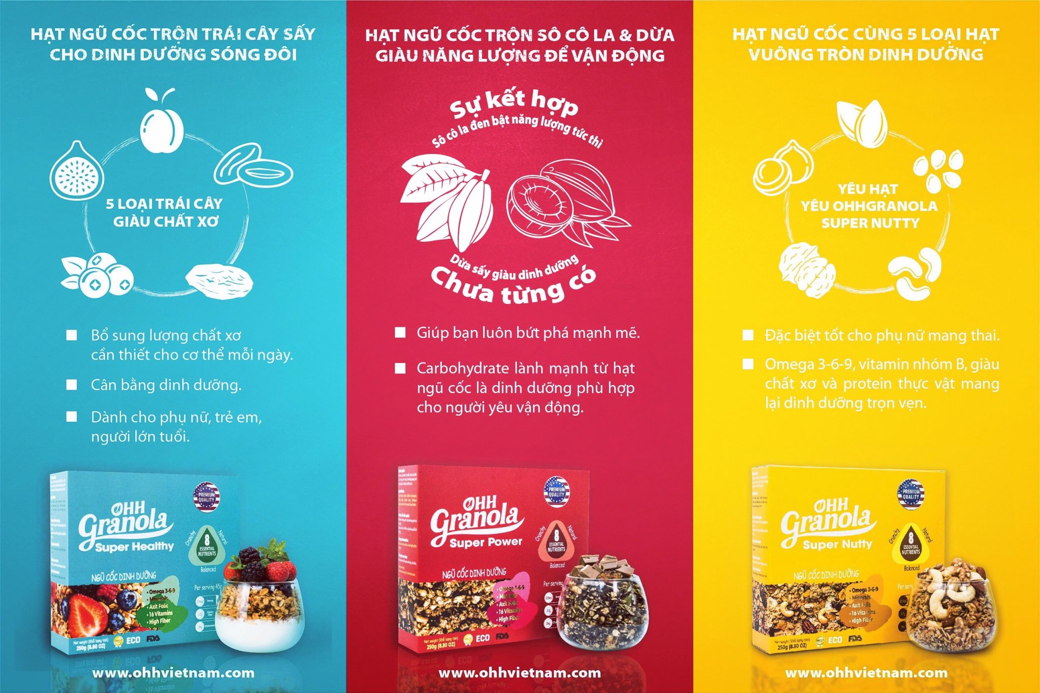 o Ngũ Cốc dinh dưỡng Super Power Ohh Granola có hương vị tự nhiên, độ ngọt vừa phải, sử dụng liền, không cần thêm đường, hương liệu,…