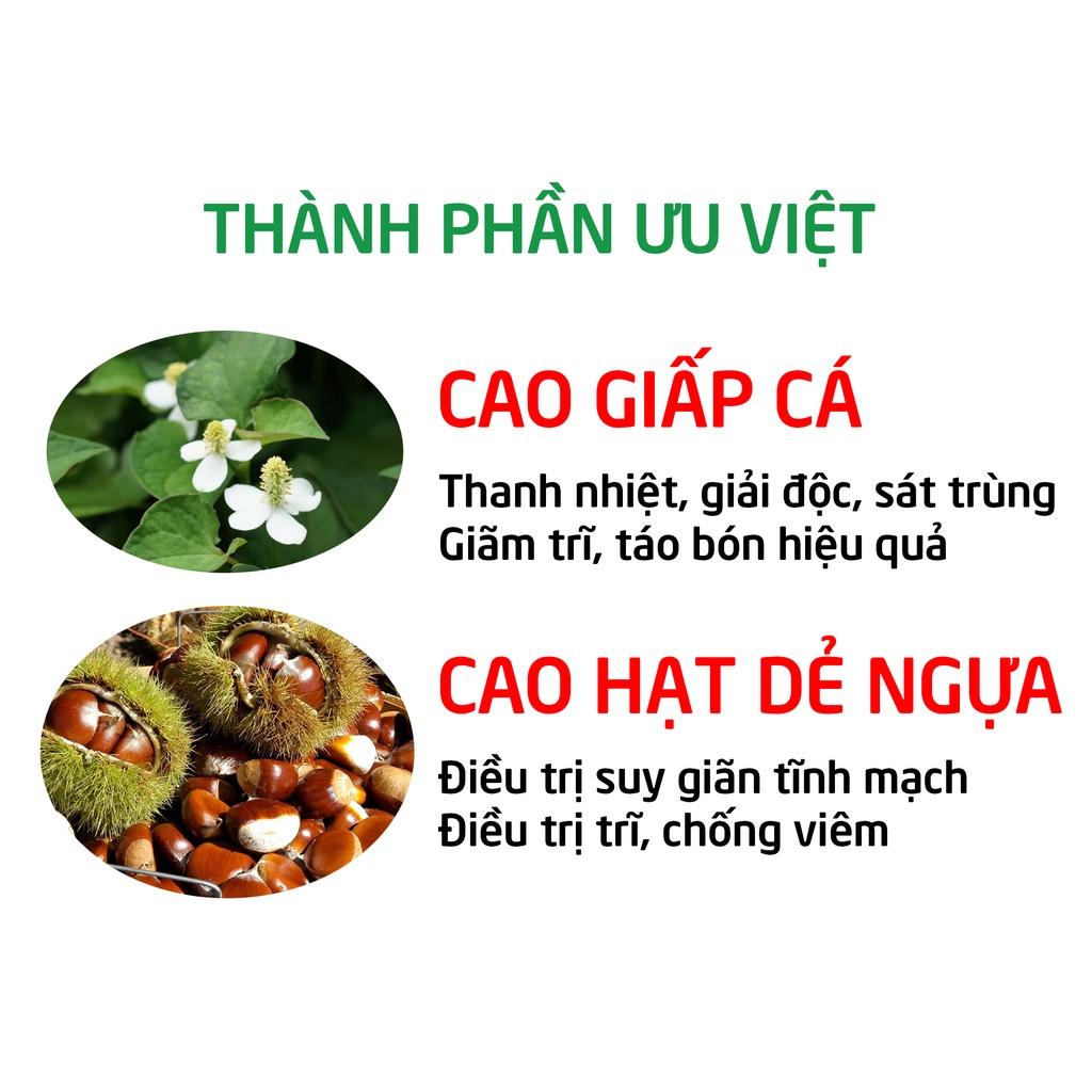 Viên uống Giấp Cá Plus - Giảm trĩ nội, trĩ ngoại từ diếp cá, chất xơ hòa tan giảm táo bón và Rutin