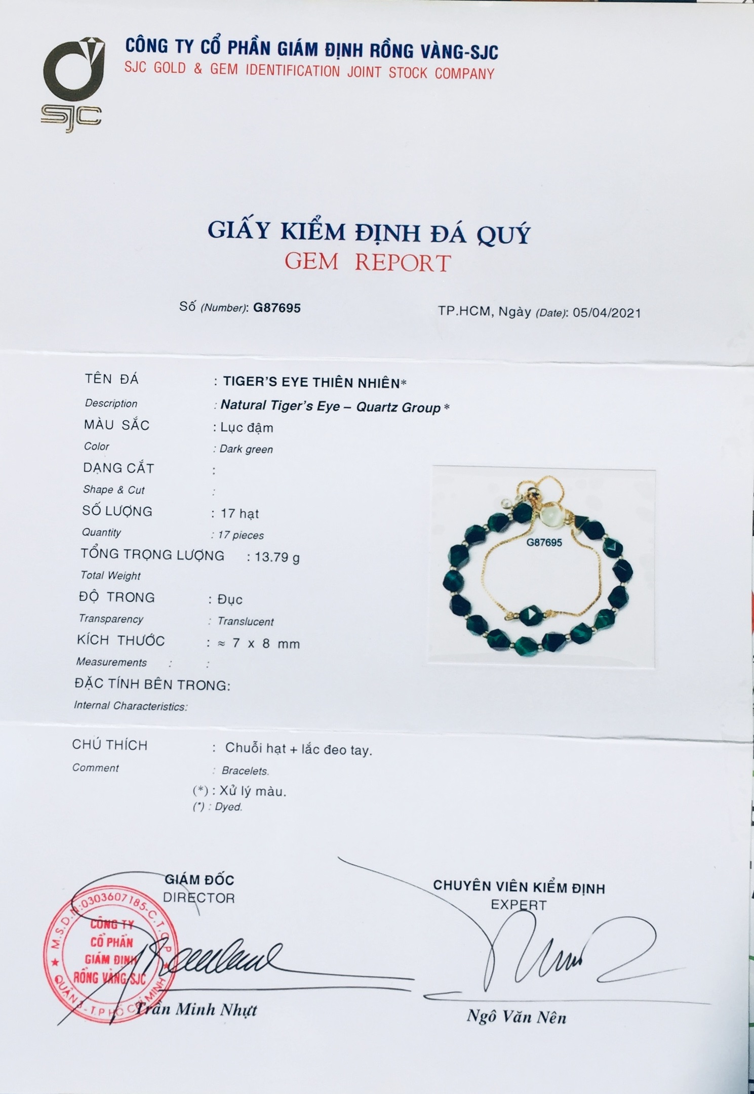 Bộ sản phẩm: 02 Lắc tay + 01 hộp Hoa Hồng lót nhung + bản Photocopy Giấy kiểm định đá quý của SJC LAB