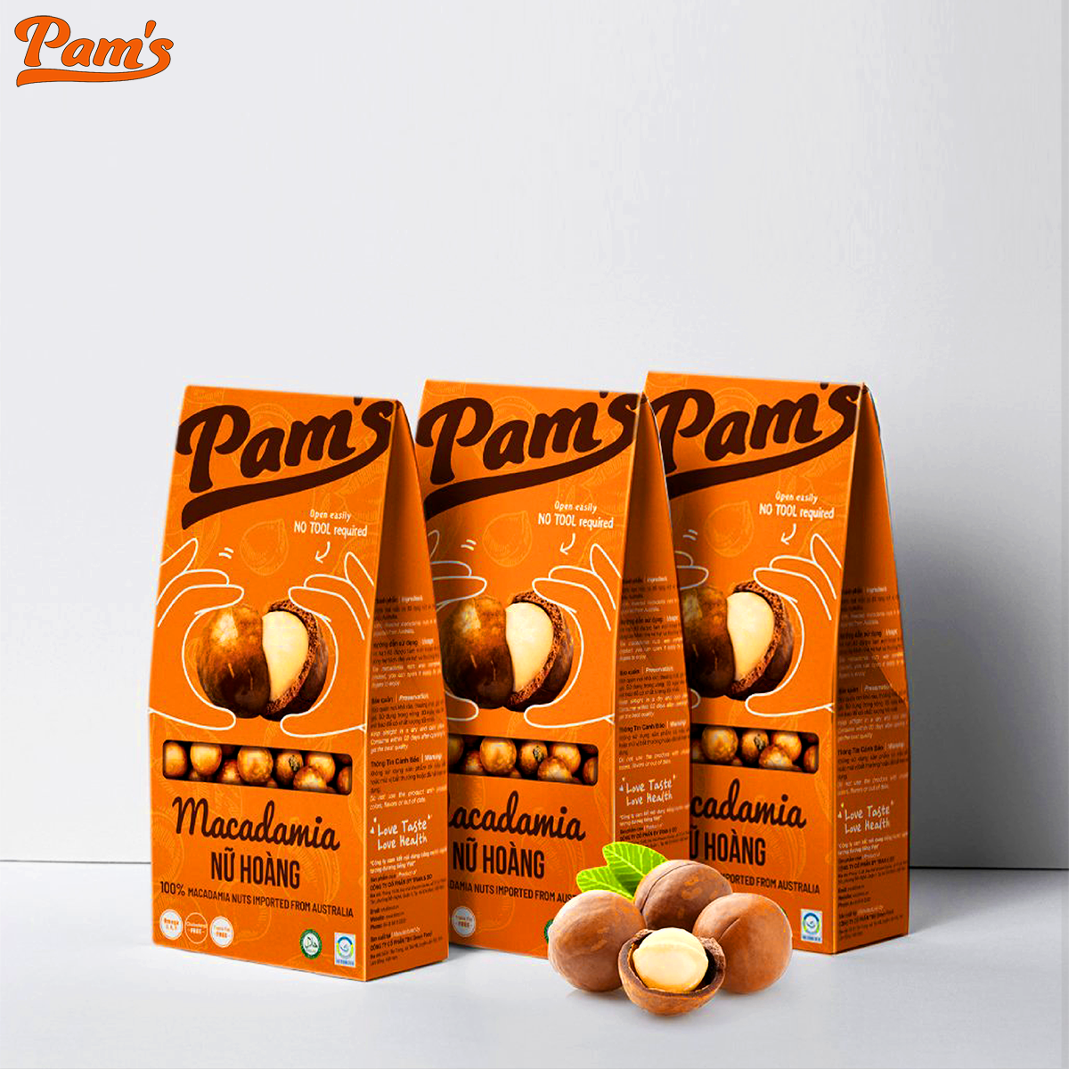 - Maccadamia Nữ Hoàng được bảo hành theo từng hạt, đổi trả 1:1. Đặc biệt, có thể tách bằng tay không cần dùng dụng cụ tách là dòng sản phẩm Signature của Pam's. ️ MÔ TẢ: