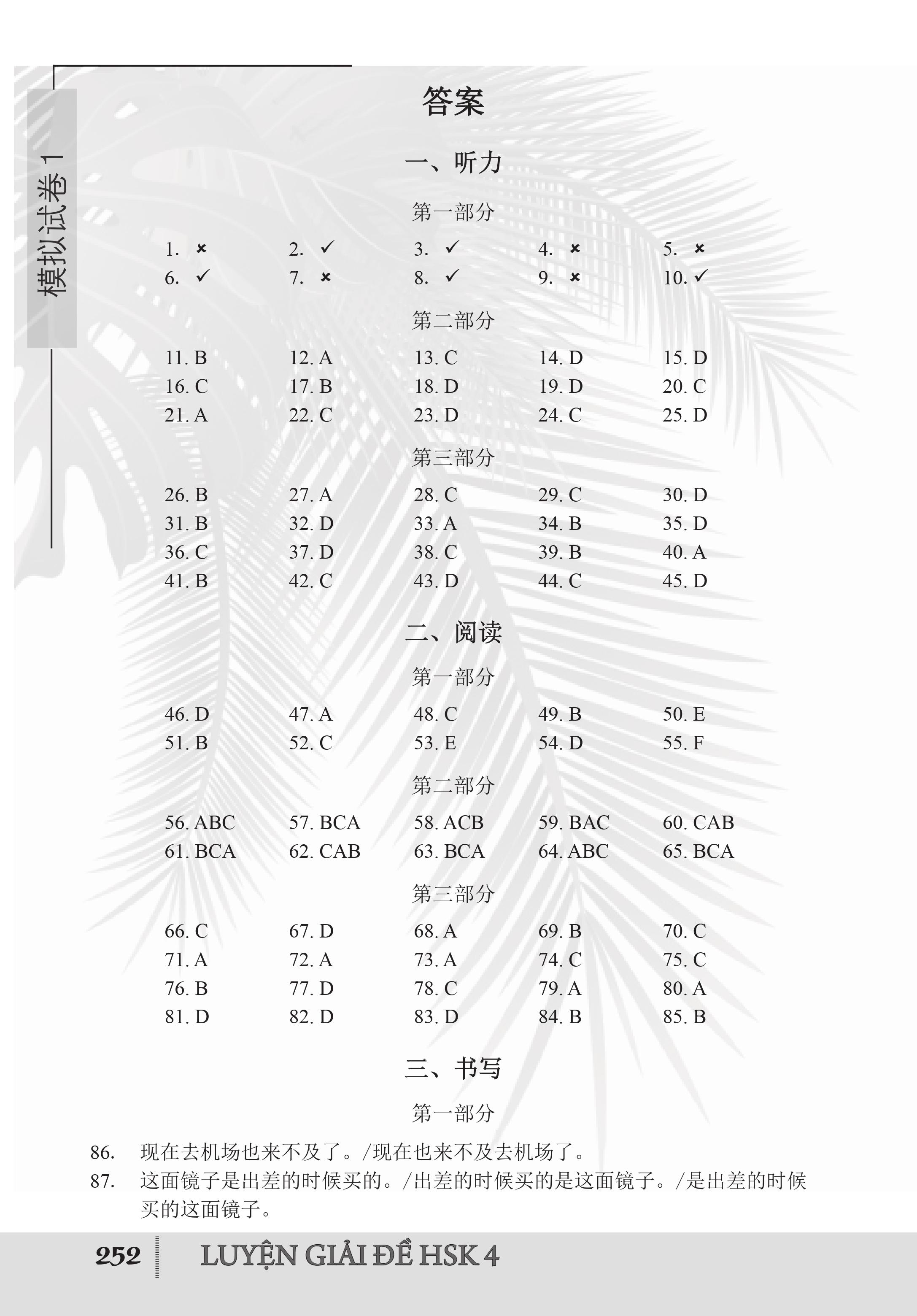 • Phần 2: Đề thi mô phỏng (cung cấp 12 đề thi mô phỏng HSK cấp 4)