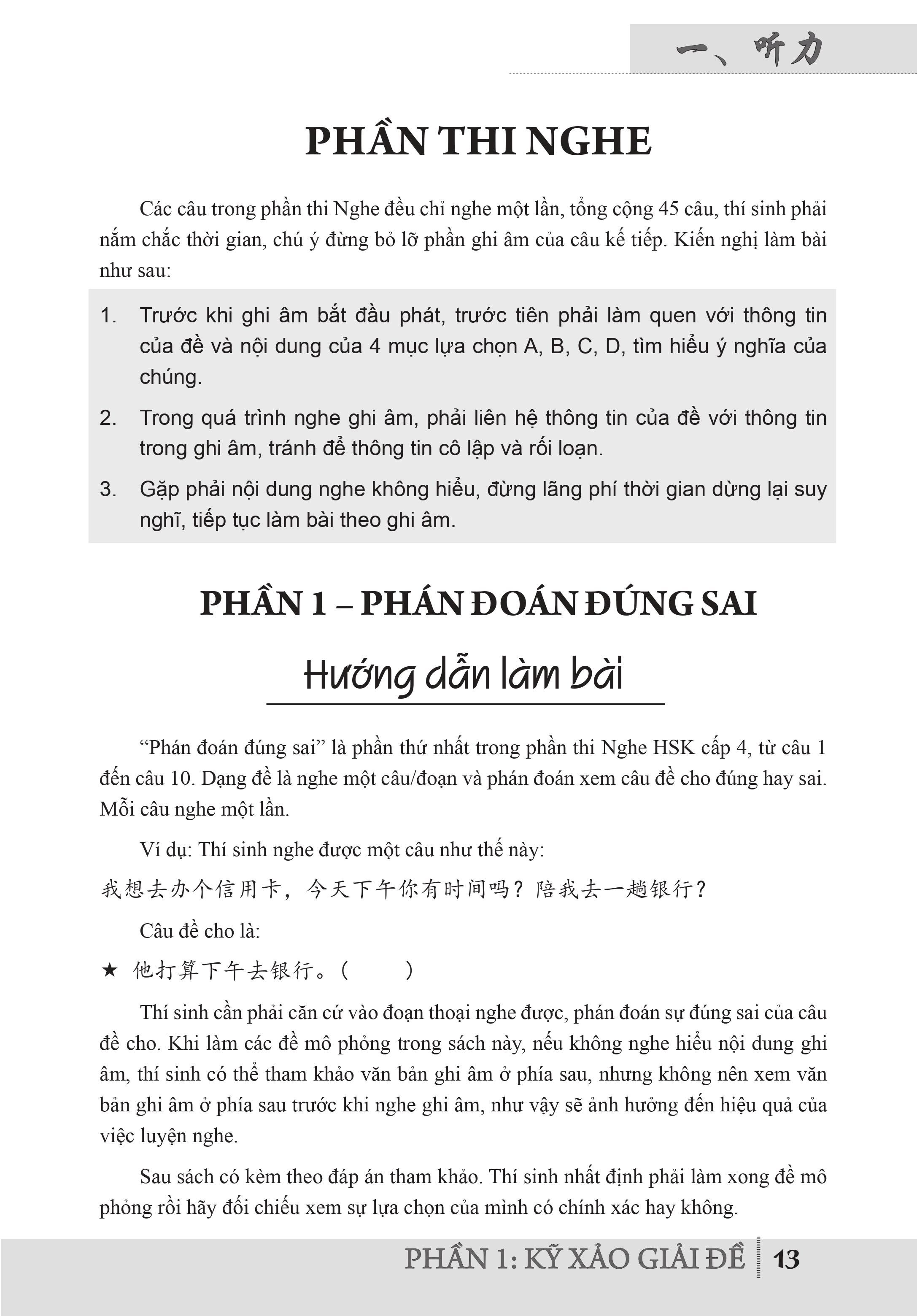 • Phần 2: Đề thi mô phỏng - cung cấp 12 bộ đề thi mô phỏng được biên soạn sát với đề thi thực của kỳ thi HSK cấp 4.