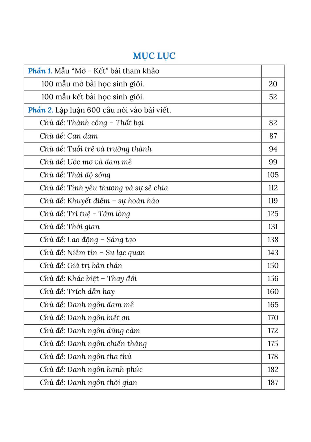Trong bài văn Nghị luận xã hội, sự luận lập đóng vai trò quan trọng và quyết định điểm số của toàn bộ bài văn. Khi triển khai ý, không có sự lập luận, thì mọi lý lẽ đưa ra chỉ là lý thuyết. Nên qua 500 ý văn lập luận cô đã cung cấp trong sách, các bạn sẽ học thêm được những ý văn lập luận sắc sảo cho bài viết của mình.