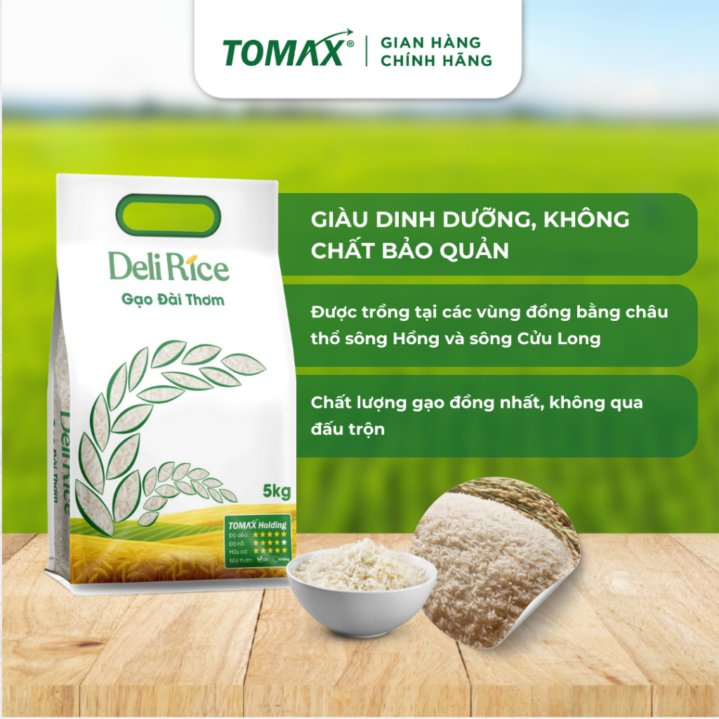 COMBO 2 TÚI 5KG GẠO ĐÀI THƠM DELI RICE - TƠI XỐP, DẺO THƠM, THƠM DỊU - TOMAX Gạo hữu cơ Đài Thơm Deli Rice 100% không có chất bảo quản, không có chất chống