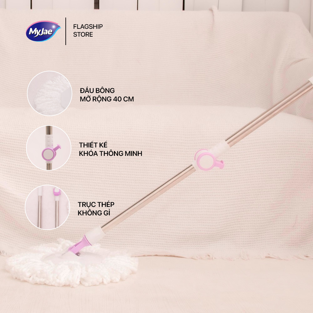 ✨Combo 3 Bông Lau + 1 Cây Lau Nhà Đơn MyJae Sợi Microfiber Xoay 360 Độ Phù Hợp Cho Nhiều Loại Thùng Lau 134cm