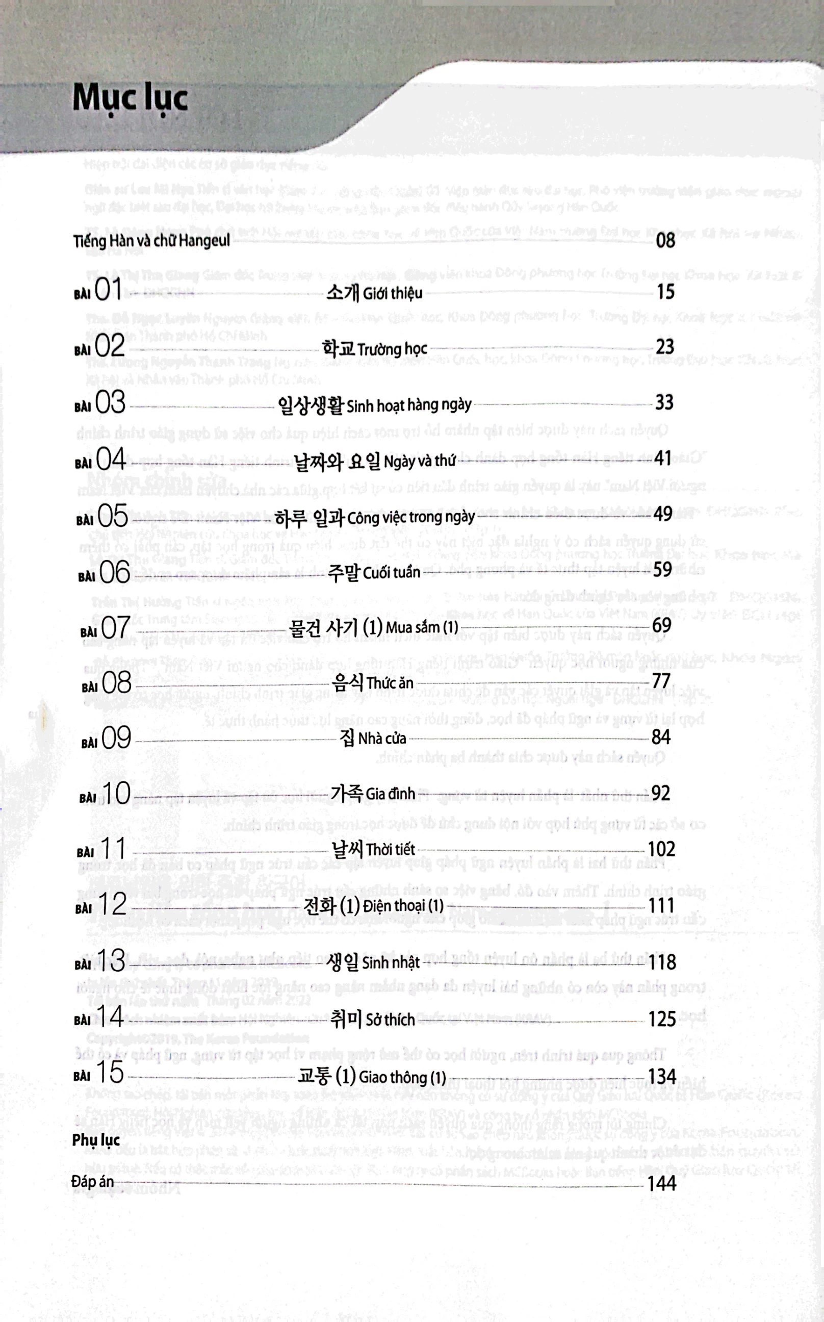 Tiếng Hàn Tổng Hợp Dành Cho Người Việt Nam - Sơ Cấp 1 Trong những năm gần đây, nhu cầu học tiếng Hàn và tìm hiểu về văn hóa Hàn Quốc đang có xu hướng tăng lên. Người học tiếng Hàn rất mong muốn có được một bộ giáo trình chuẩn, được biên soạn một cách tỉ mỉ và hữu ích nhất. Giáo trình tiếng Hàn tổng hợp lần đầu tiên được trao bản quyền chính thức tại Việt Nam Hiểu được điều đó, ngày 4-7, Đại diện chính phủ Hàn Quốc, ngài Woo Hyeong Min – Trưởng đại diện Văn phòng Quỹ giao lưu Quốc tế HQ tại Việt Nam cùng GS.TS.NGƯT Mai Ngọc Chừ – Chủ tịch Hội Nghiên cứu khoa học về Hàn Quốc của Việt Nam (KRAV) đã trao quyết định cho phép Công ty Cổ phần sách MCBooks của Việt Nam được xuất bản cuốn sách này tại thị trường Việt Nam. Và đây chính là bộ giáo trình tiếng Hàn tổng hợp đầu tiên có bản quyền chính thức có mặt tại Việt Nam. Cũng theo ông Woo Hyeong Min, Thực tế đây là bộ giáo trình chính thống mà tất cả người học tiếng Hàn tại Việt Nam cần sử dụng. Tuy nhiên nhiều năm qua bộ sách đến tay người dùng đều là sách lậu nên chưa đạt được kết quả mà chính phủ Hàn muốn mang tới Việt Nam. Do đó Chính phủ Hàn Quốc đã quyết định tìm 1 đơn vị xuất bản uy tín của Việt Nam để giúp họ mang đến cho người học những cuốn sách tiếng Hàn chất lượng tốt với giá cả hợp lý. Bộ giáo trình được Hội nghiên cứu khoa học Hàn Quốc của Việt Nam biên soạn và hiệu đính. Bộ giáo trình sẽ giúp nâng cao hiệu quả trong việc sử dụng ngôn ngữ Hàn sau tiếng mẹ đẻ và tiếng Anh, là nền tảng giúp người lao động Việt Nam nhận được những vị trí làm việc cao trong doanh nghiệp Hàn Quốc. Đây cũng là cách để thúc đẩy quan hệ hợp tác về văn hoá và giáo dục giữa hai nước trong thời gian tới. Giới thiệu cuốn Giáo trình tiếng Hàn tổng hợp dành cho người Việt Nam – Sơ cấp 1 Giáo trình tiếng Hàn tổng hợp dành cho người Việt Nam – Sơ cấp 1 được biên soạn dành cho người Việt Nam muốn học tiếng Hàn ở trình độ sơ cấp. Sách được biên soạn nhằm hướng tới việc sử dụng được trong các tiết học tiếng Hàn tại giảng đường đại học nên mỗi bài học được chia thành nhiều phần như: Lý thuyết cơ bản gồm từ vựng và cấu trúc ngữ pháp; phần luyện tập theo 4 kỹ năng giao tiếp như: Nghe – Nói – Đọc – Viết, phần luyện phát âm, phần tìm hiểu văn hóa… Các chủ đề trong sách được sắp xếp một cách có hệ thống và liên quan chặt chẽ với nhau. Giáo trình tiếng Hàn tổng hợp được biên soạn kèm theo một cuốn sách bài tập hỗ trợ giúp người học ôn tập kỹ hơn và có thể luyện tập nâng cao trong những trường hợp cần thiết. Nội dung trong Giáo trình tiếng Hàn tổng hợp – Sơ cấp 1 2 cuốn sách trong bộ Sơ cấp được xây dựng với 30 bài khóa và bảng chữ cái. Trong đó quyển 1 gồm phần bảng chữ cái và 15 bài đầu. Học hết quyển 1, bạn sẽ học đến quyển sơ cấp 2 với 15 bài còn lại. Cấu trúc tổng thể của giáo trình được xây dựng theo các chủ đề; mỗi chủ đề được liên kết thống nhất với một hệ thống các từ vựng và cấu trúc ngữ pháp cơ bản, bài tập ứng dụng, kỹ năng và tìm hiểu văn hóa. Trong mỗi bài học, nội dung học được chia thành các phần như: luyện từ vựng, luyện ngữ pháp cơ bản, luyện tập kỹ năng nghe – nói – đọc – viết, luyện phát âm, tìm hiểu văn hóa của đất nước Hàn Quốc xinh đẹp. Và kết thúc mỗi bài đều có thêm bảng từ mới xuất hiện trong bài học. Phần cuối của sách, các tác giả đưa ra hệ thống từ mới được sắp xếp theo thứ tự của bảng chữ cái. Đây là những từ không xuất hiện trong phần ngữ pháp, từ vựng cơ bản; nhưng lại xuất hiện nhiều ở phần luyện tập của từng bài.