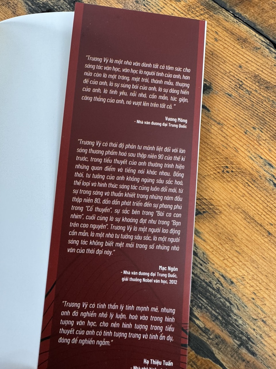 "Gia tộc" là câu chuyện về lịch sử một gia đình, lồng ghép vào lịch sử của một dân tộc. Thăng trầm của lịch sử dân tộc để lại dư chấn sâu sắc trong từng thế hệ gia tộc. Tiểu thuyết không chỉ là sử thi mà còn là bi kịch với những chấn thương tâm hồn của thế hệ sau, đặc biệt là với ám ảnh về cuộc sống ấu thơ trong môi trường khắc nghiệt. Mỗi gia tộc mang theo huyền thoại và anh hùng riêng, nhưng cũng đi kèm với những biến động chính trị và khổ đau cá nhân. Hình ảnh người cưỡi ngựa đỏ và tiếng gọi của phương xa trở thành điểm nhấn, ký ức về một quá khứ huy hoàng. Tiểu thuyết kết hợp thơ văn xuôi, tạo ra một không gian nghệ thuật độc đáo và đậm chất tự sự Trung Quốc.
