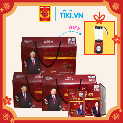 Premium Deer Antler With 6 Years Korean Red Ginseng Chiết Xuất Nhung Hươu Và Hồng Sâm Hàn Quốc 6 Năm Tuổi Quy cách: 1 HỘP 30 gói ( gồm 3 hộp lớn, mỗi hộp chứa