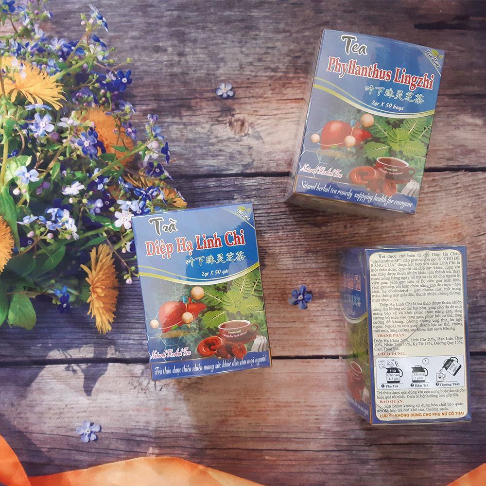 Trà được chế biến từ cây Diệp Hạ Châu “phyllanthus SP”, dân gian ta còn gọi là “CHÓ ĐẺ RĂNG CƯA” được kết hợp với nấm Linh Chi là một thảo dược quý rất tốt cho sức khỏe, cùng với các thảo dược thiên nhiên khác làm thành trà, thay nước uống hằng ngày hỗ trợ và rất tốt cho người bị viên gan, viên gan siêu vi B, viên gan mãn tính, viên gan cấp, rối loạn chức năng gan do rượu – hóa chất, hạ cholesterol – gan nhiễm mỡ, mỡ trong máu, thông mật giải độc, thanh nhiệt, chống dị ứng, mụn nhọt …vv.
