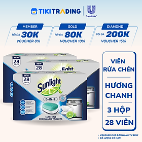 Combo 3 Hộp Viên Rửa Chén Bát Sunlight 5in1 Dành Cho Máy Rửa Chén (28 Viên/Hộp)