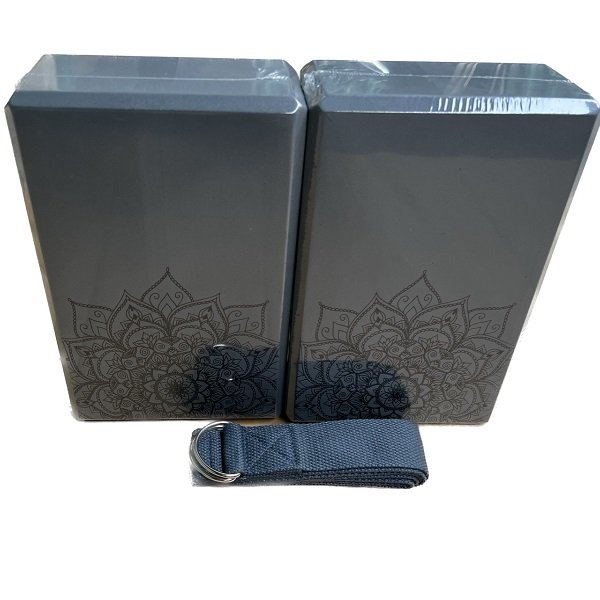 MÔ TẢ SẢN PHẨM Combo 3 món - 2 Gạch gối yoga hoa văn Mandala + 1 dây đai conton hỗ trợ tập yoga động tác khó Một combo bao gôm 2 gạch , 1