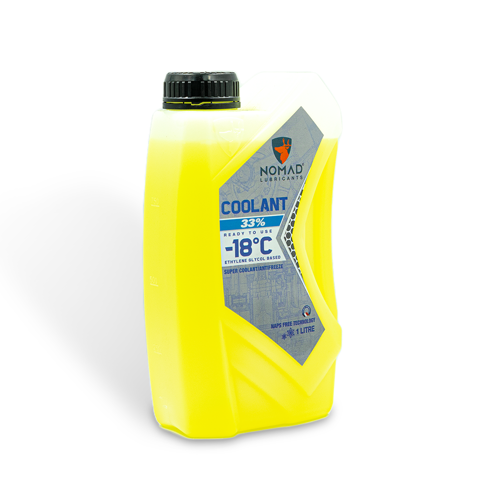 - Thu gom và xử lý đúng cách sau sử dụng để bảo vệ môi trường. Không vứt bao bì, không đổ dầu nhớt xuống đất, nguồn nước Nước làm mát động cơ NOMAD COOLANT 33%, -18 độ C (1L) Nước làm mát Nomad Coolant 33% (-18OC) được sản xuất từ gốc Ethylene Glycol – là hoạt chất có khả năng tăng cường khả năng tản nhiệt cho động cơ và hạ thấp nhiệt độ đóng băng xuống -18OC so với Ethylene Glycol nguyên chất (nhiệt độ đóng băng tại -12OC). Do đó, Nomad Coolant 33% đạt công dụng tản nhiệt vượt trội cho động cơ, lượng nhiệt dư thừa khi động cơ vận hành sẽ được dung dịch hấp thu, vận chuyển vào bộ tản nhiệt và giải phóng khỏi động cơ hiệu quả. Bên cạnh đó, Nomad Coolant 33% còn bảo vệ các đường ống dẫn nước, két nước và bơm nước trong hệ thống động cơ, tránh tình trạng đóng cặn cứng ở két nước. LỢI ÍCH SẢN PHẨM NƯỚC LÀM MÁT NOMAD