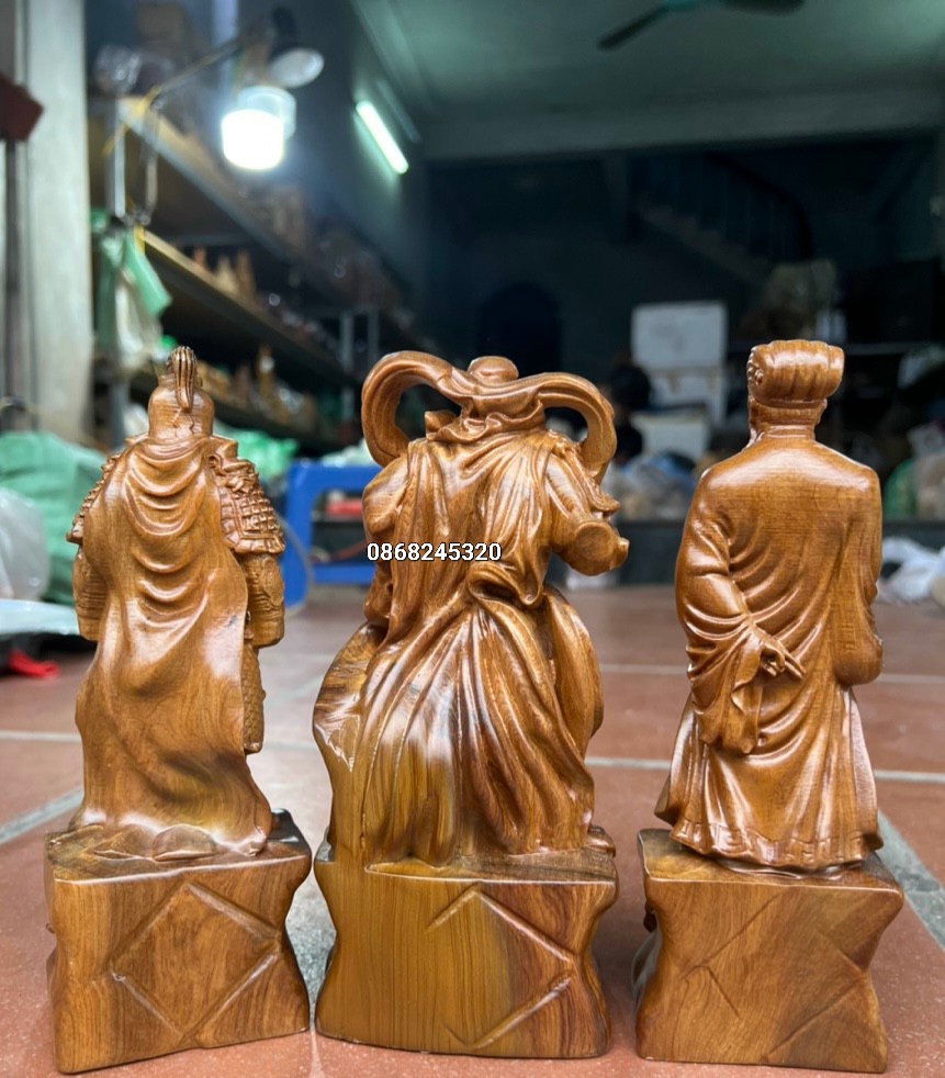 _ Tượng được trạm khắc tỉ mỉ ,tinh sảo kỳ công .Đi hầu hết tất cả mọi chi tiết góc ngách nội dung hoa văn của bộ tượng đều được gọt tỉa chỉnh sửa sắc nét hoàn toàn bằng tay thủ công .Tượng được làm và hoàn thiện do bàn tay khối óc tài hoa .Từ những người thợ giàu kinh nghiệm ,cũng như tay nghề cao trong làng nghề truyền thống .Chính vì thế bộ combo 3 tượng bằng gỗ bách xanh đã đáp ứng đầy đủ mọi tiêu trí cần thiết như ( Đẹp bền rẻ ) Thẩm mỹ nghệ thuật với chất lượng tuyệt vời