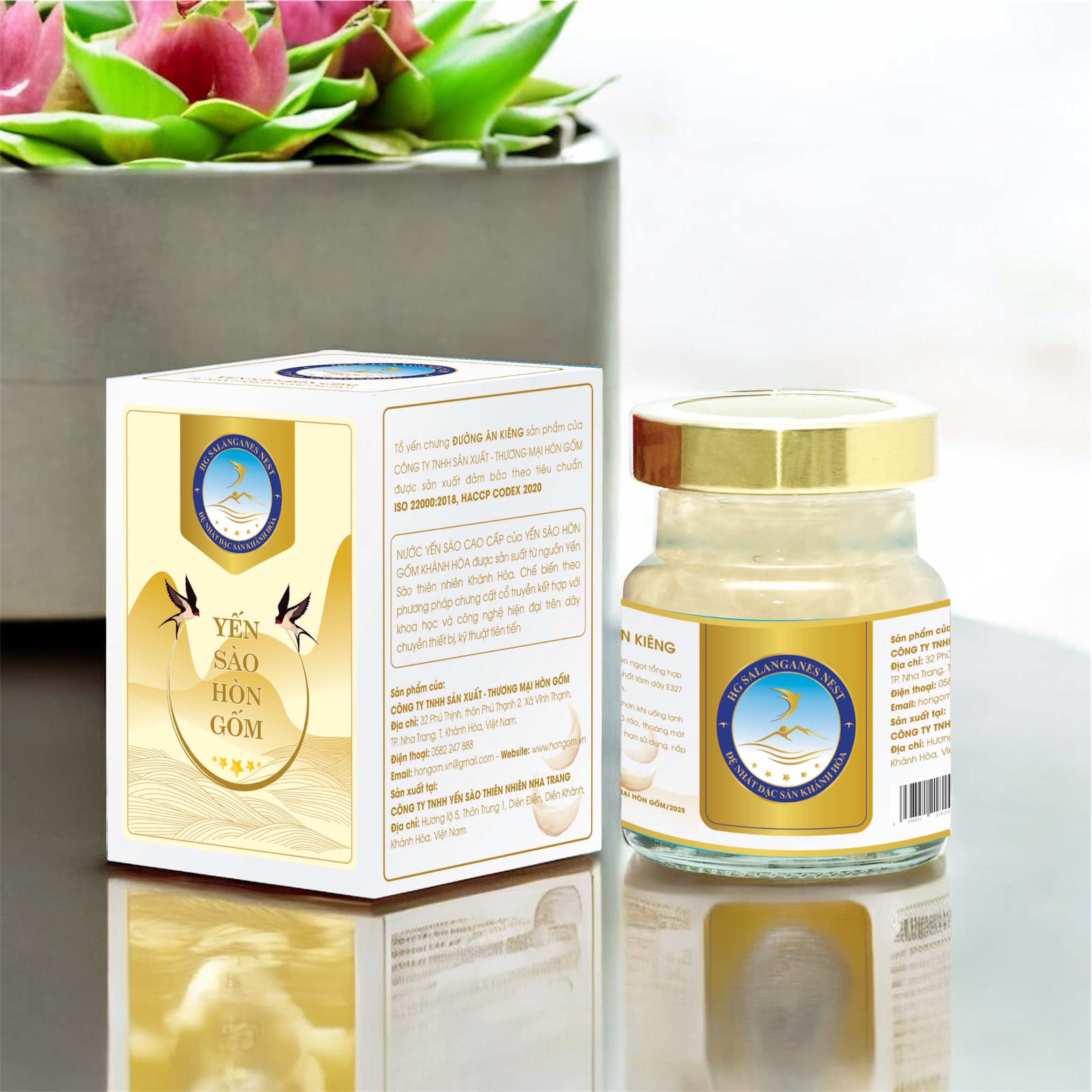 Nước Yến Sào Chưng Đường Ăn Kiêng - Yến Sào Hòn Gốm Khánh Hòa Thương hiệu đạt Top 10 Sao Vàng Thương Hiệu Quốc Gia 2024 Được chiết xuất từ 6g yến tươi nguyên chất,