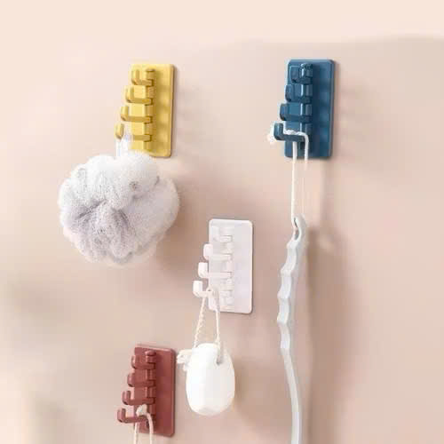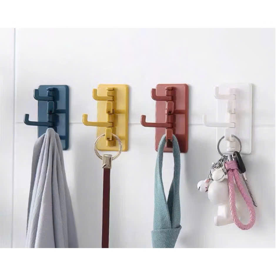 Combo 4 Móc Treo Dán Tường 4 Nhánh Chất Liệu Nhựa ABS Tải 5kg Thân Trục Xoay Thay Đổi Vị Trí
