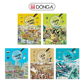 Combo 5 cuốn Thử tài tìm kiếm Bộ sách Thử tài tìm kiếm không chỉ mang đến những thử thách mới lạ mà còn chứa đựng những thông tin hấp dẫn về nhiều chủ đề. Bộ sách gồm 5 tập: Thử tài tìm kiếm – Động vật: Từ cá sấu hung hãn đến ngựa vằn thân thiện, từ bọ xâu tai tí hon đến voi châu Phi to đùng, từ đầm lầy ẩm ướt đến vùng cực Bắc giá lạnh… em sẽ tha hồ đi khắp năm châu bốn bể và tìm kiếm hàng trăm loài động vật kì thú trong cuốn sách nhỏ này. Dì Marigold tặng em một món quà đặc biệt: tấm vé du lịch vòng quanh tế giới. Trong chuyến đi, sẽ có những thử thách yêu cầu em tìm kiếm nhiều thứ và phát hiện ra điểm đến tiếp theo. Không chỉ mang đến nhiều giờ giải trí thú vị, Thử tài tìm kiếm – Thế giới còn chứa đựng vô vàn thông tin hấp dẫn về các dân tộc và xứ sở trên thế giới. Thử tài tìm kiếm  - Khủng long Từ Uyển long to lớn ăn thực vật đến những đàn Linh đạo long ăn thịt nguy hiểm, trong những trăng cảu cuốn sách tranh tuyệt đẹp này là vô số sinh vật cho em tìm kiếm. Ngoài những thách đố thú vị, Thử tài tìm kiếm – Khủng long còn cung cấp cho em nhiều thông tin hấp dẫn về các sinh vật đáng kinh ngạc từng sống trên Trái Đất nhiều triệu năm về trước. Thử tài tìm kiếm - Lịch sử Trong mỗi trang đôi của cuốn sách này có một bức tranh thể hiện sống động khung cảnh đặc trưng của một thời kì lịch sử, với nhiều nhân vật, động vật và đồ vật để em tìm kiếm. Ngoài hoạt động giải trí hấp dẫn, Thử tài tìm kiếm – Lịch sử còn chứa đựng nhiều kiến thực thú vị giúp độc giả nhỏ vừa chơi vừa học. Thử Tài Tìm Kiếm - Biển Khơi Từ bạch tuộc khổng lồ và cá mập trắng đến những thợ lặn biển sâu và kho báu dưới biển, trong các trang của cuốn sách tranh tuyệt đẹp này có nhiều thứ để em tìm kiếm. Thử tài tìm kiếm – Biển khơi chứa đựng vô vàn thông tin thú vị về thế giới trong lòng biển, từ rạn san hô kì diệu đến đáy đại dương sâu thẳm. Thử Tài Tìm Kiếm – Thành Phố Thị trưởng Maurice sẽ là người hướng dẫn cho em trong chuyến thăm thú trọn một ngày này. Mỗi điểm dừng chân trong Thử tài tìm kiếm – Thành phố đều chứa đựng nhiều điều thú vị cho em tìm kiếm và vô số thông tin mới lạ về các thành phố cùng những người sống và làm việc ở đó cho em tha hồ tìm hiểu.