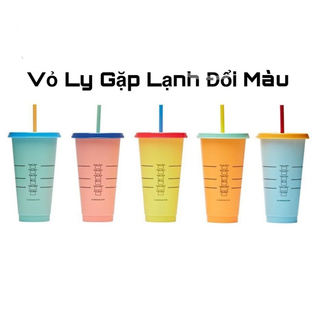 Combo 5 Ly Cốc Uống Nước Starbuck Đổi Màu Theo Nhiệt Độ Độc ĐÁo Có Thể Tái Sử Dụng - Tặng Kèm Nắp Và Ông Hút - Hàng Loại 1- Chính Hãng MINIIN