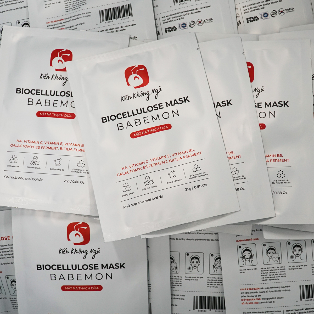 Mua tại TiktokCombo 5 miếng Mặt nạ sinh học dừa tươi lên men – Mặt nạ thạch dừa Biocellulose Mask Babemon Mặt nạ sinh học dừa tươi lên men cao cấp – Mặt nạ thạch dừa Biocellulose Mask Babemon của Kiến Không Ngủ dưỡng da trắng sáng, làm mờ các dấu hiệu lão hóa da, cấp ẩm, hỗ trợ phục hồi và trẻ hóa làn da, giúp làn da căng mịn, sáng khỏe. Sở hữu công thức đặc biệt được nghiên cứu kỹ lưỡng bởi các chuyên gia R&D của Việt Nam và Hàn Quốc, phù hợp với đặc trưng của làn da phụ nữ Việt Nam, mặt nạ thạch dừa Biocellulose Mask Babemon giúp làm dịu da, hỗ trợ làm đều màu da, cung cấp đủ độ ẩm cho da, giúp da săn chắc, mịn màng hơn. Sau mỗi lần sử dụng, bạn sẽ cảm nhận ngay sự tươi mới, mịn màng và sức sống trên làn da của mình. CÔNG DỤNG