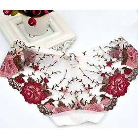 Quần lót thêu hoa hồng với thiết kế tinh xảo, tỉ mỉ trong từng chi tiết, đường may, hứa hẹn sẽ chiếm trọn tình cảm của mọi chị em. Chất liệu Vải sheer mềm mại, xuyên thấu kết hợp với chi tiết thêu ren hoa sẽ khiến phái đẹp thêm gợi cảm, quyến rũ. Đáy quần với lớp vải cotton mềm mại đem đến cho nàng sự tự tin, thông thoáng và đảm bảo vệ sinh. Thiết kế Họa tiết thêu hoa tinh xảo, độc lạ đầy quyến rũ, gợi cảm, tinh tế Quần lót với lớp vải mỏng manh, xuyên thấu đem đến một sức hút khó cưỡng Quần ôm trọn 3/4 mông tôn dáng vòng 3 Đường viền chun mềm mại, đàn hồi tốt không gây đau rát đem đến sự thoải mái cho nàng. Bảng size Size quần lót: Free size. Thiết kế quần chun co giãn phù hợp với số đo vòng 3 < 90 cm