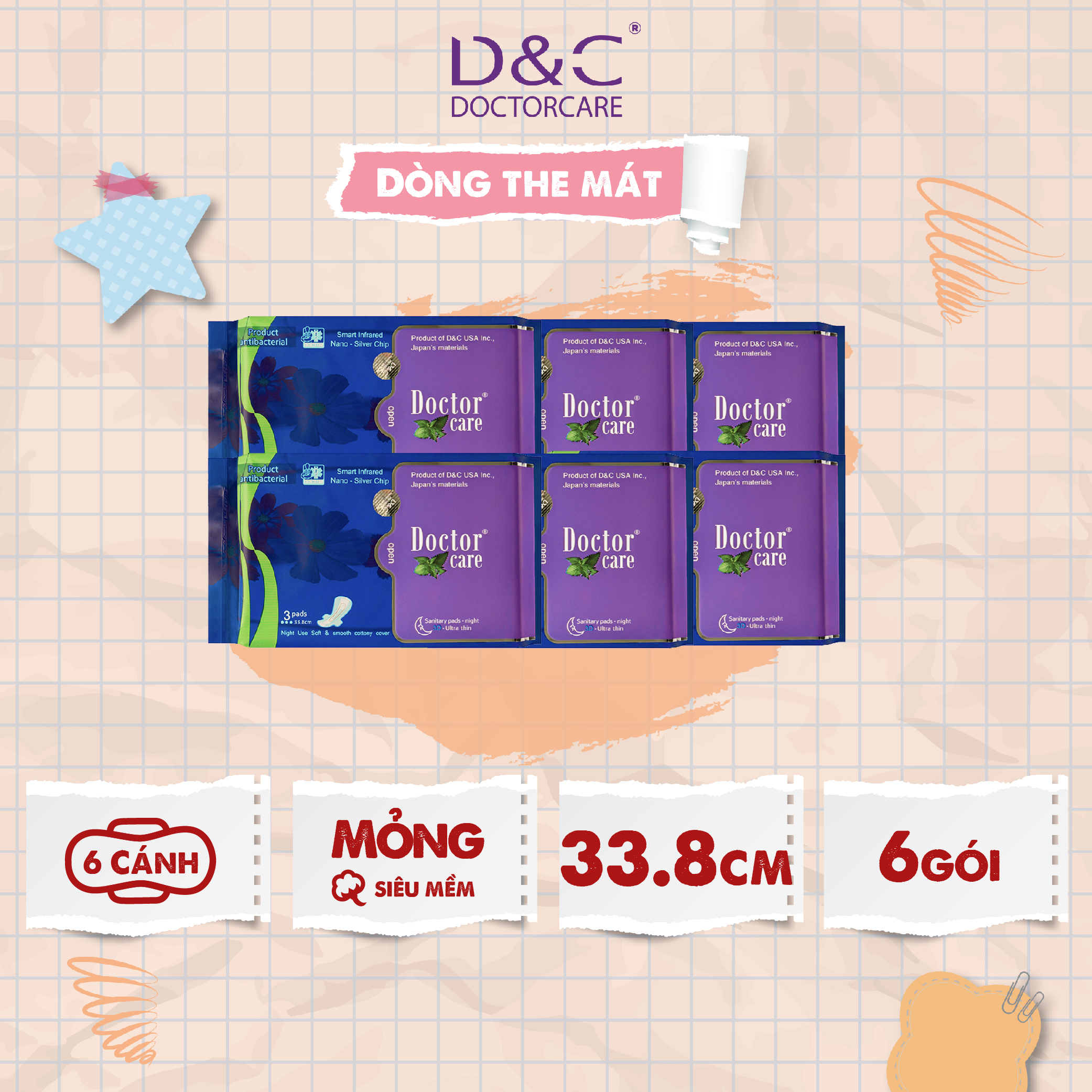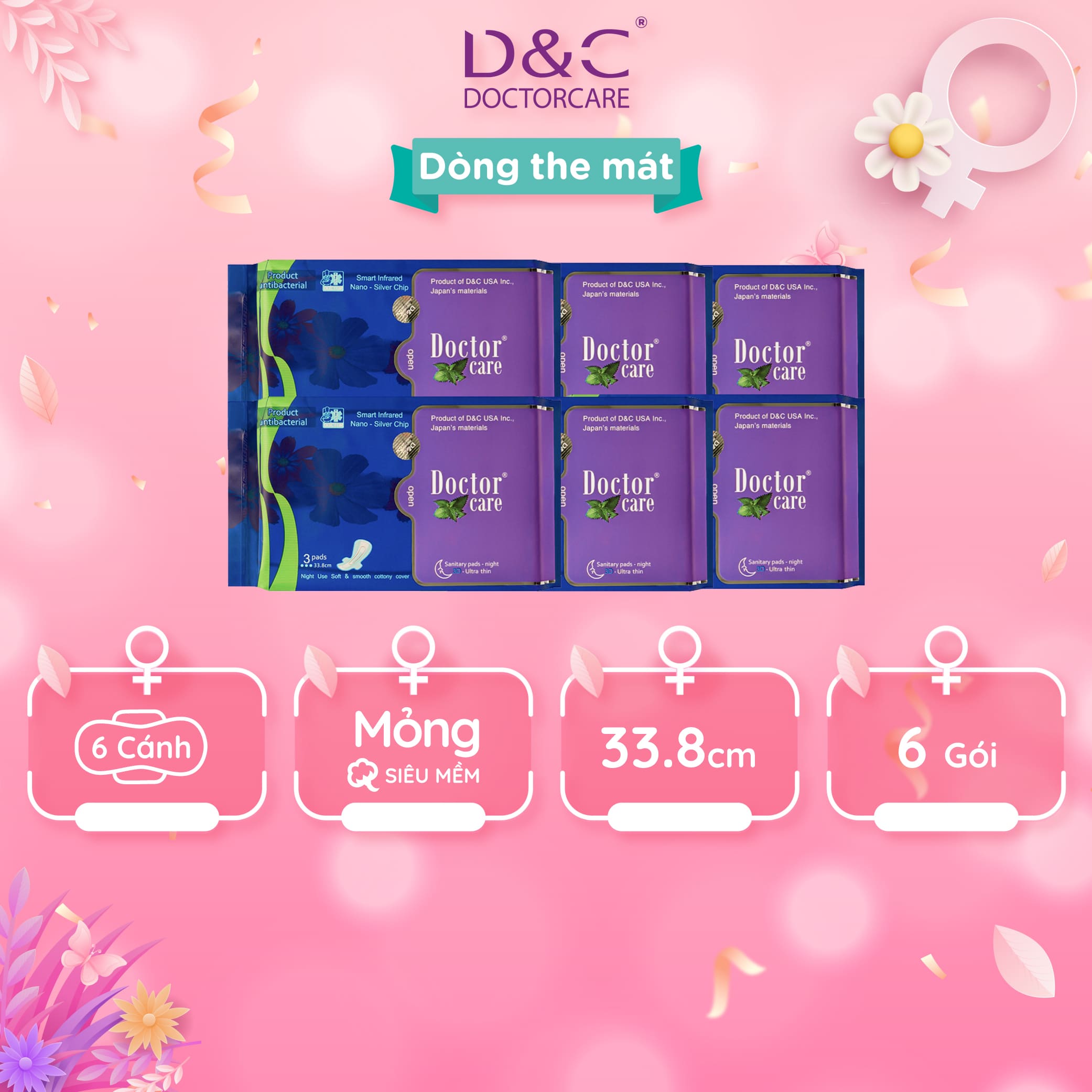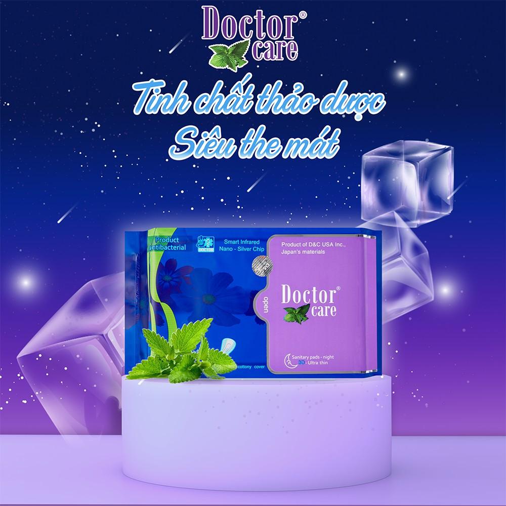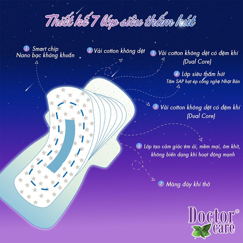 - Băng vệ sinh thảo dược Doctor Care ban đêm có cấu trúc 3D gồm 7 lớp thấm hút và kháng khuẩn nhưng vẫn giữ được kết cấu siêu mỏng, siêu nhẹ