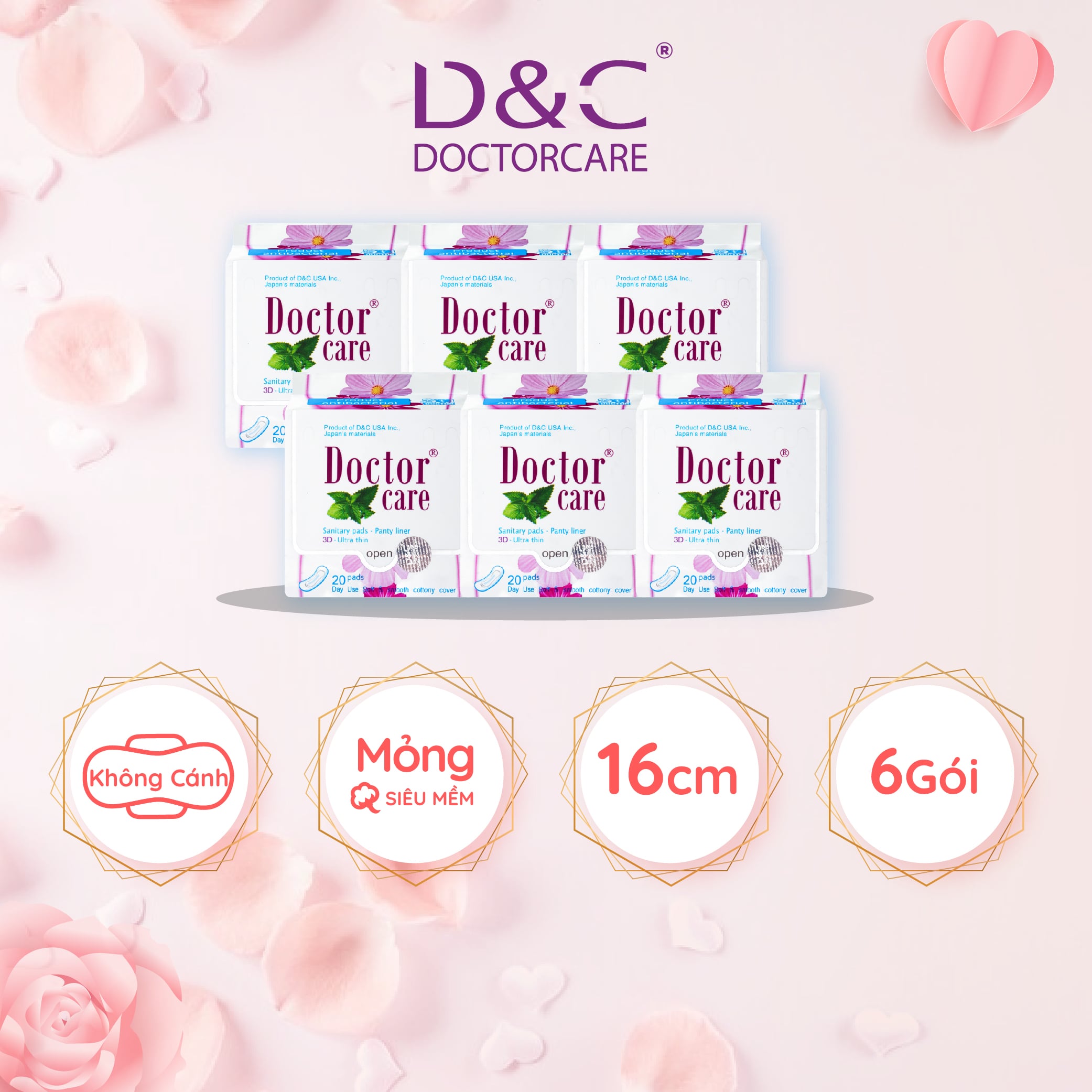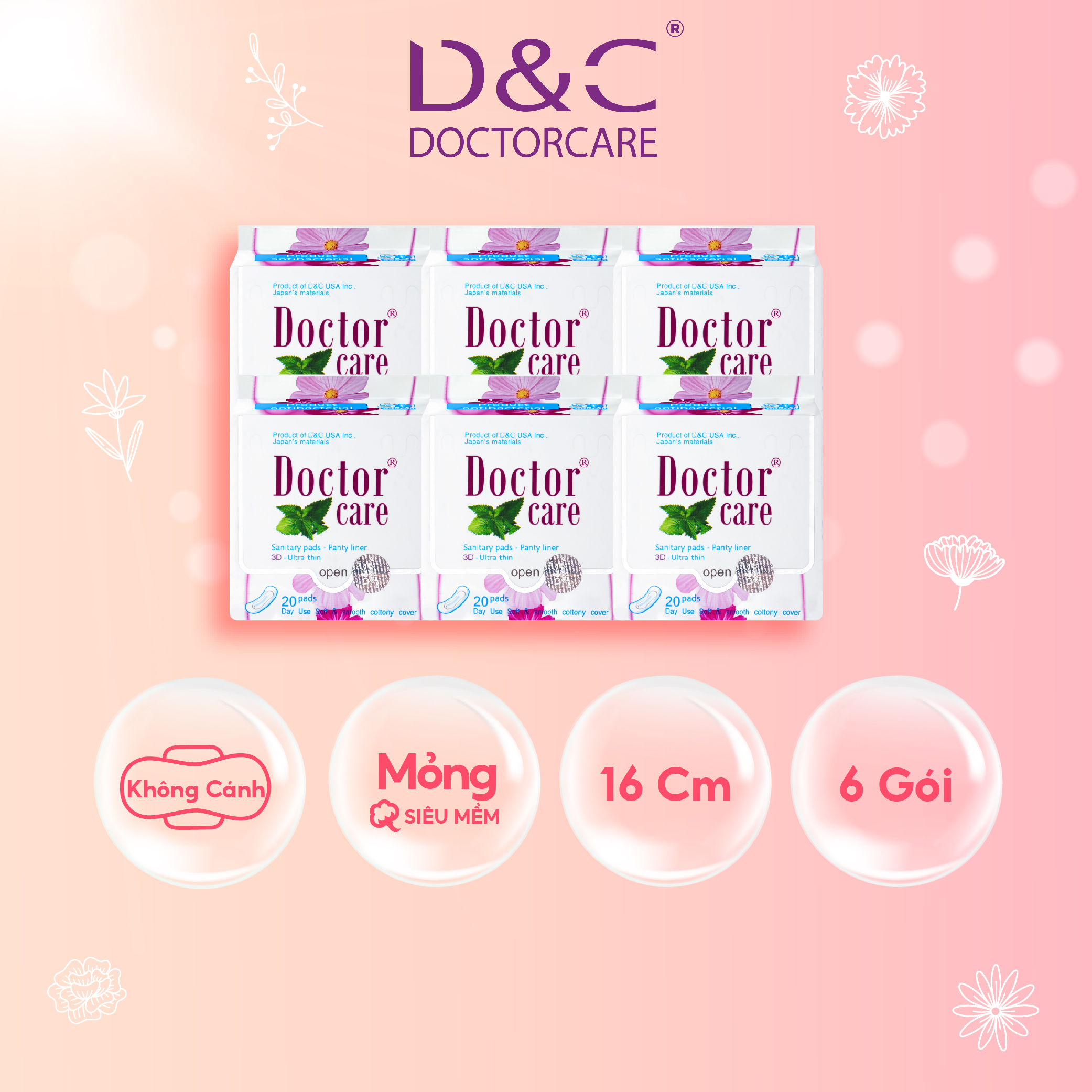 - Đóng gói: [6 gói x 20 miếng] ĐẶC ĐIỂM NỔI BẬT BĂNG VỆ SINH HÀNG NGÀY DOCTOR CARE: