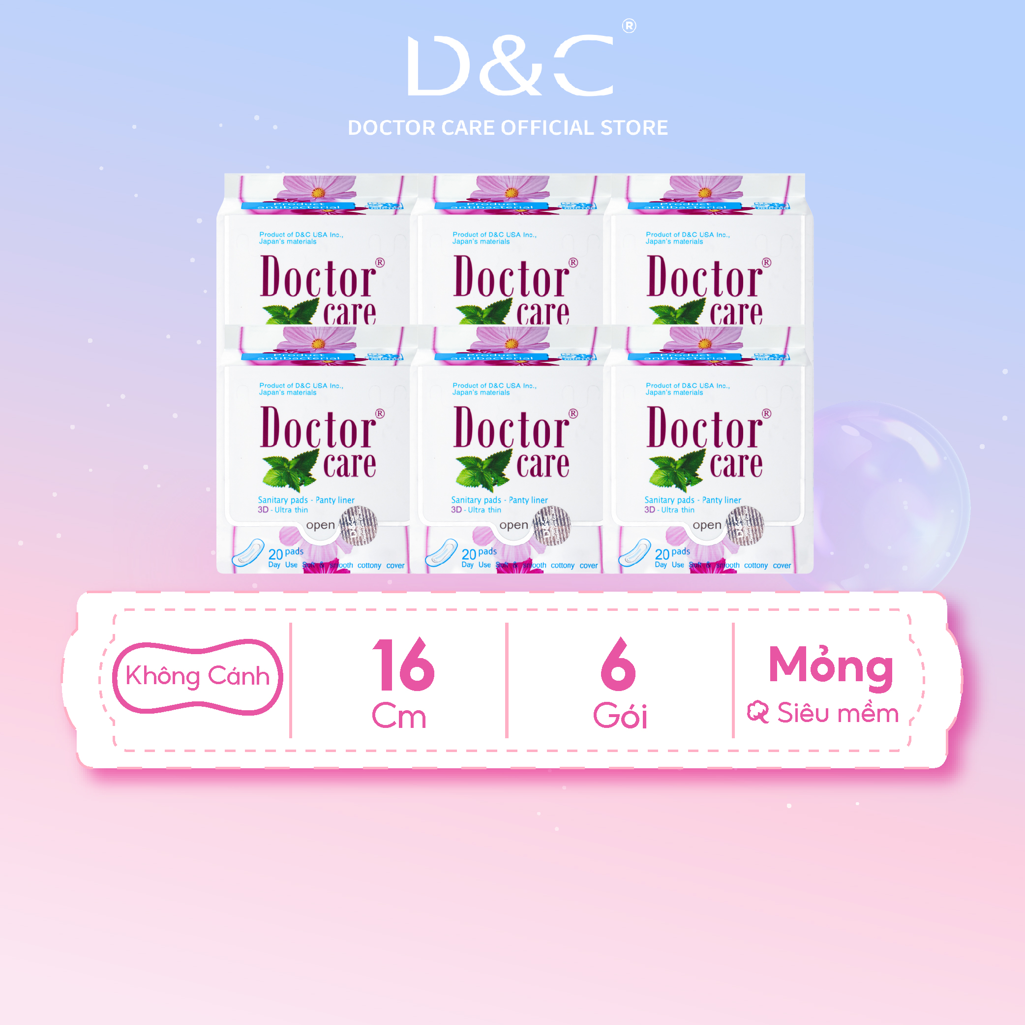 - Băng vệ sinh thảo dược Doctor Care hàng ngày có cấu trúc 3D gồm 6 lớp thấm hút và kháng khuẩn nhưng vẫn giữ được kết cấu siêu mỏng, siêu nhẹ
