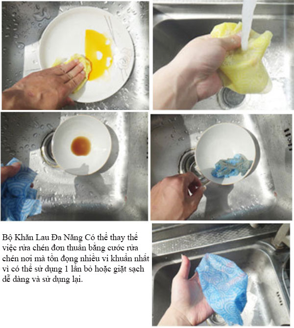 Sản phẩm có thể thay thế các loại cước rửa chén nhiều vi khuẩn để rửa chén rất nhanh và tiện dụng. Có thể bỏ sau 1 lần dùng hoặc rửa sạch và sử dụng lại.