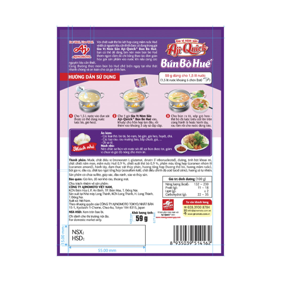 Để nấu được món Bún bò Huế truyền thống, người nội trợ cần phải hầm xương sử dụng làm nước dùng lên đến 4 tiếng đồng hồ và phải kết hợp nhiều gia vị. Thấu hiểu được điều đó, CÔNG TY AJINOMOTO VIỆT NAM đã cho ra mắt sản phẩm Gia vị nêm sẵn Aji-Quick Bún Bò Huế.