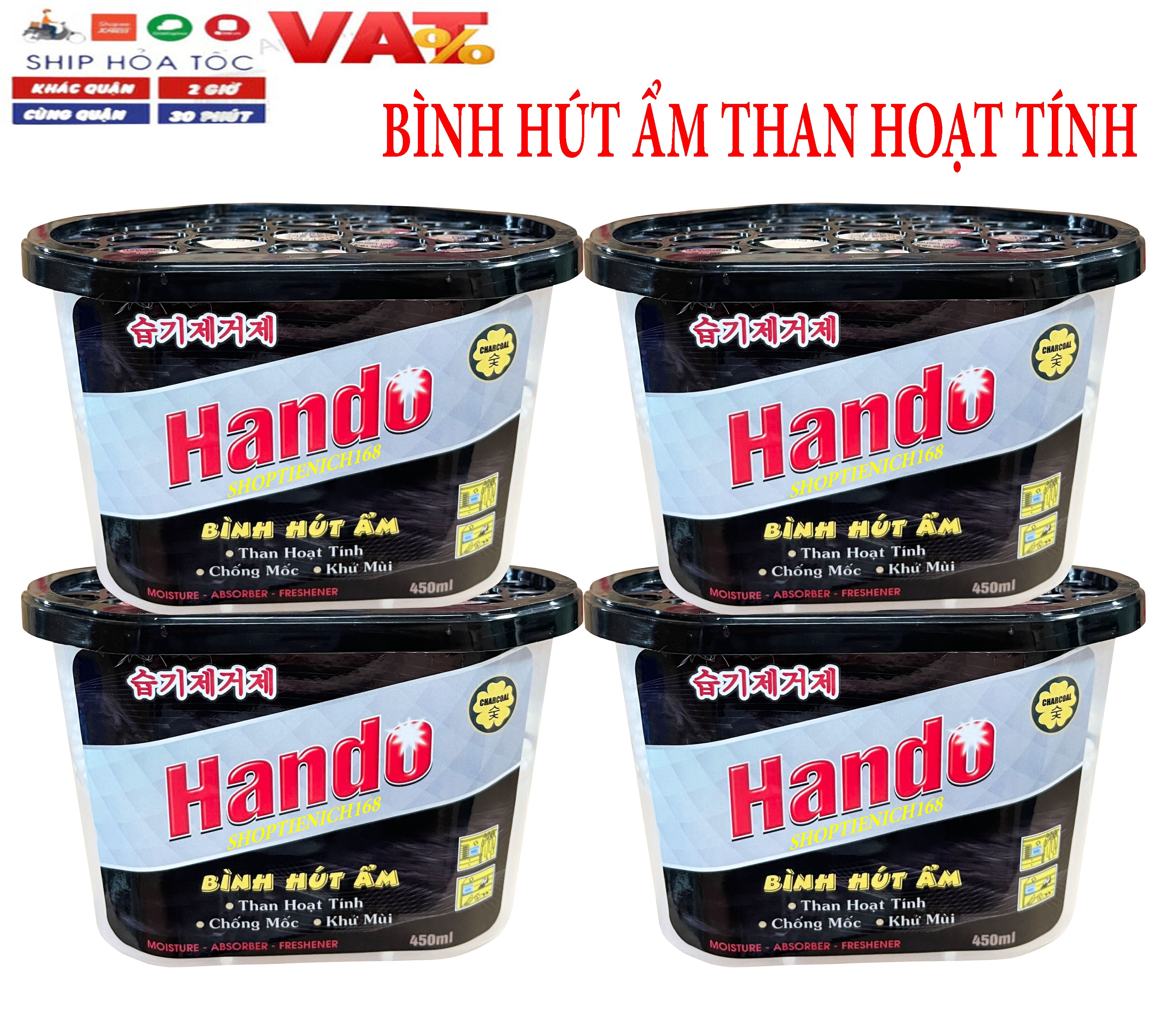 Tên sản phẩm : Bình hút ẩm chống ẩm mốc than hoạt tính Hando 450ml Công dụng : Sản phẩm có thể đặt trong tủ quần áo, tủ thuốc, tủ giày dép, tủ bếp và