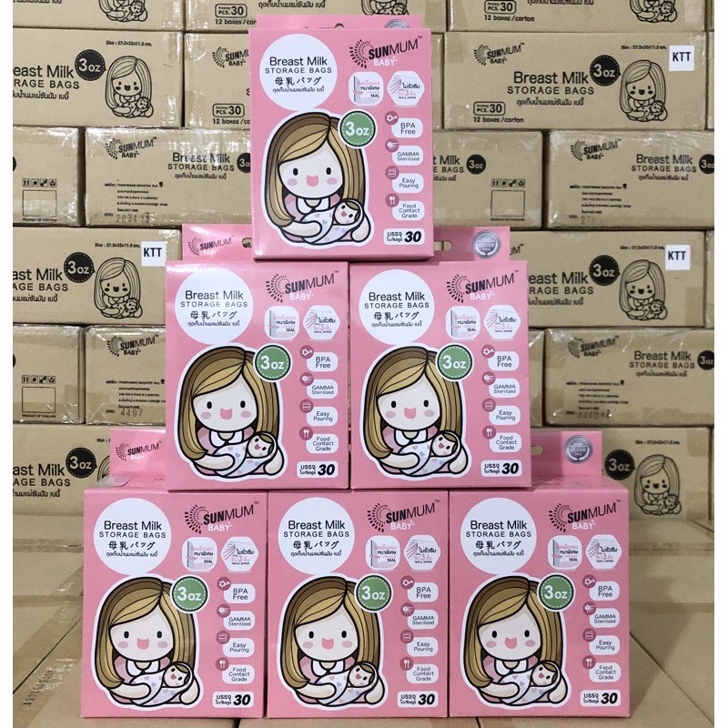 Mua tại TiktokTúi trữ sữa Sunmum 100ml (hộp 30 túi, 2 hộp) tặng 2 zipper bảo quản Giới thiệu Túi trữ sữa SunMum của Thái Lan là vật dụng đặc biệt đảm bảo giữ sữa an toàn về chất lượng của sữa mẹ ngay sau khi hút ra, là sản phẩm tiện lợi cho các bà mẹ bận rộn. Sản phẩm túi trữ sữa Sunmum 50pcs New được sản xuất bởi công ty Thanatawan – công ty số 1 về sản phẩm túi trữ sữa tại ĐÔNG NAM Á đảm bảo các tiêu chuẩn an toàn, đạt tiêu chuẩn xuất khẩu ra thị trường châu Âu, Mỹ,...Với nhiều ưu điểm vượt trội như không chứa BPA, khử trùng bằng tia Gamma, khóa zipper 3 lớp, túi 2 lớp sẽ giúp các mẹ chăm sóc bé dễ dàng và hiệu quả nhất. Chất Liệu Sản phẩm được làm từ vật liệu không có BPA, Nhựa rất an toàn, không sinh ra chất độc hại khi sử dụng rất an toàn cho em bé. Đặc Điểm Nổi Bật