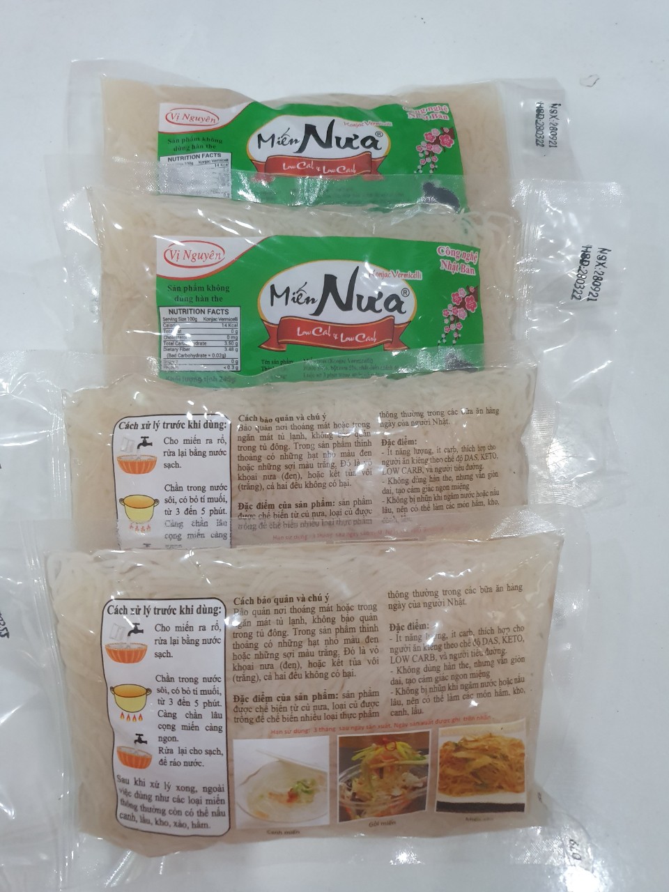 MIẾN NƯA VỊ NGUYÊN 240G - Xuất xứ: Việt Nam - Hạn sử dụng: 6 tháng (gói 240g) - Đóng gói: 240g/gói - Bảo quản: Nơi thoáng mát Những thực phẩm được làm từ bột Glucomanna