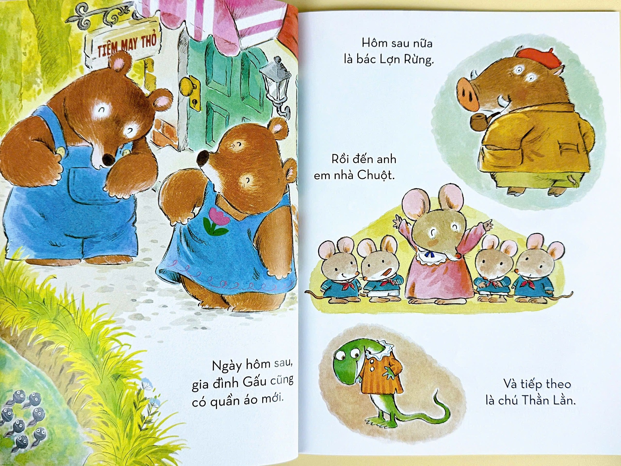 Bác Thỏ mở tiệm may, ai đi ra từ tiệm cũng có bộ đồ xinh lắm. 7 chú nòng nọc cũng muốn có, vậy là chúng đặt bác Thỏ may 7 bộ đồ. Bác Thỏ ngâm cứu ngày đêm, may xong bộ quần áo, có chừa chỗ cho đuôi của nòng nọc. Vậy mà đến lúc 7 anh em mặc vào lại không còn vừa, vì chúng mới mọc thêm chân, bác Thỏ lại mang về sửa. Vài hôm sau, 7 chú thử đồ mới, lại không vừa. Bé có biết vì sao không? Thế rồi bác Thỏ còn phải sửa thêm mấy lần nữa. 7 chú nòng nọc đã lớn lên thành ếch, cùng tổ chức buổi hòa nhạc, hay đi ngắm tuyết rơi...sống cùng nhau hạnh phúc suốt 4 mùa bên hồ nước trong rừng, với những bài học đầu đời ý nghĩa về cuộc sống! Combo Bảy Chú Ếch Con (5 Cuốn) gồm: Bảy chú ếch con - Mặc quần áo mới - Tập 1 Bảy chú ếch con - Tìm rốn - Tập 2 Bảy chú ếch con - Cất cao giọng hát - Tập 3 Bảy chú ếch con - Cùng đi ngắm tuyết - Tập 4 Bảy chú ếch con - Lời cảm ơn - Tập 5