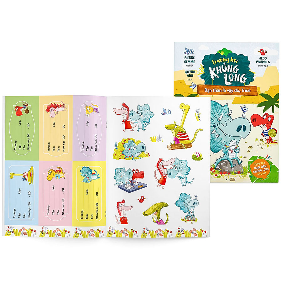Cùng xem chuyện gì đã xảy ra với các bạn nhỏ ở TRƯỜNG HỌC KHỦNG LONG nha! Và đừng bỏ qua bộ sưu tập hình dán khủng long siêu dễ thương, học thêm từ mới cùng nhiều thông tin thú vị về các loài khủng long trong bộ sách này nữa!